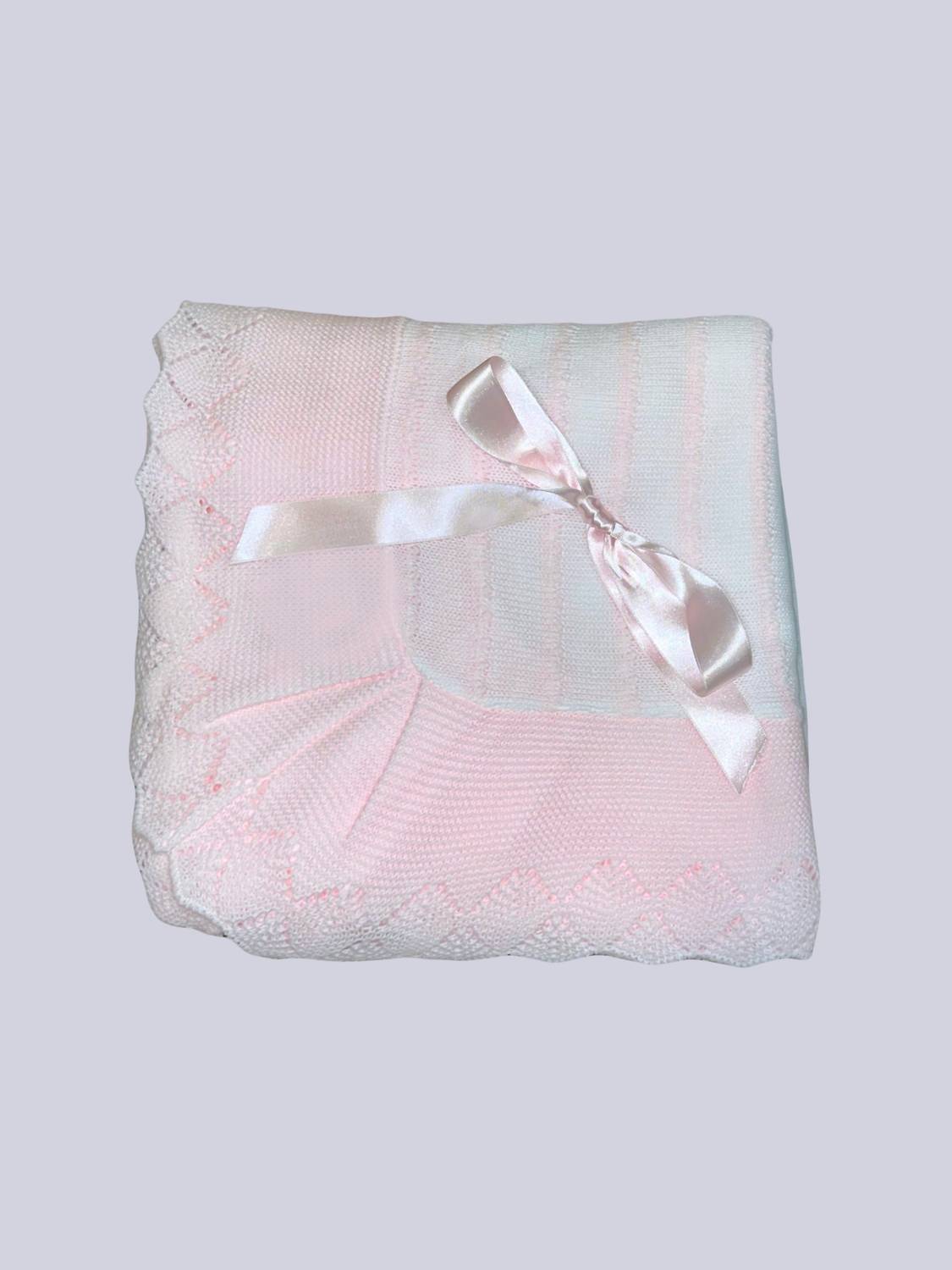 Wrap your little one in comfort with the Baby Striped Blanket by Juliana, featuring soft knit detailing in a charming light pink with white accents. Ideal for keeping your baby snug, this blanket comes with a removable satin ribbon and delightful striped pattern. This cozy accessory is a must-have for any nursery.