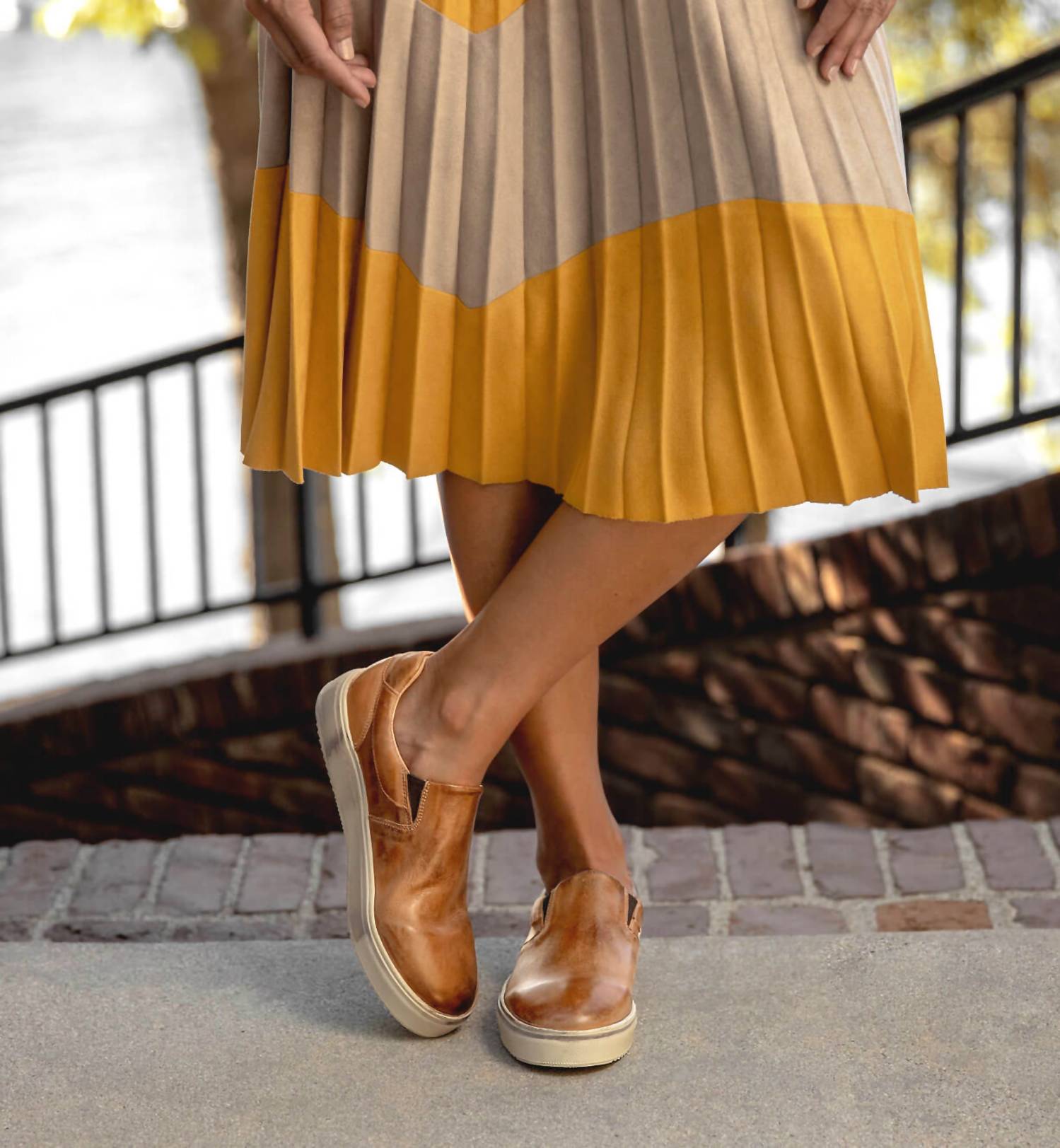When fashion and function come together seamlessly. Introducing the Hermione Slip On Sneaker by BEDSTU, crafted in Tan Rustic Mason Bfs for the fashion-forward explorer. These women's sneakers feature a round toe design with a flat heel under 1", perfect for minimalist spring travel. Made from chrome-free, vegetable-tanned leather and expertly handmade in Leon, Mexico, these sneakers boast a durable white LIVETECH ® sole. The slip-on style with goring for stretch and a padded collar ensures all-day comfort.