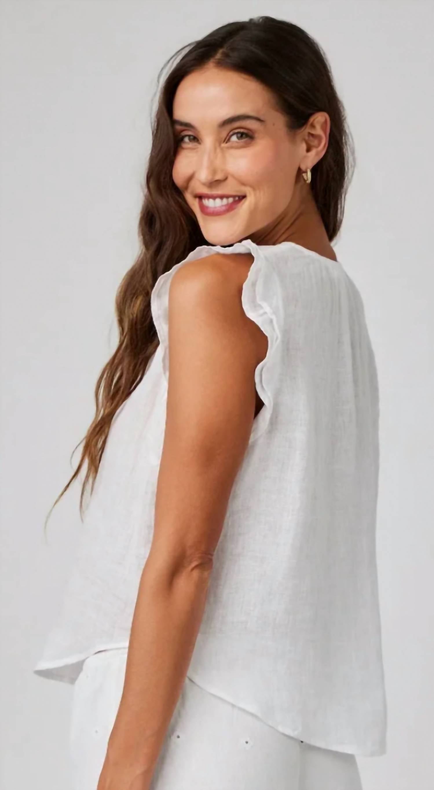 Elevate your wardrobe with the Bella Dahl Linen Ruffle Sleeve Top in a charming pink hue, perfect for the minimalist trend. This women's blouse features short sleeves adorned with delicate ruffles, offering a feminine flair to your ensemble. Crafted from 100% linen, it boasts a V-neckline and a relaxed fit, making it ideal for spring gatherings or dinner parties. Care is simple with hand washing and laying flat to dry, and with sizes ranging, it ensures the perfect fit for your style.