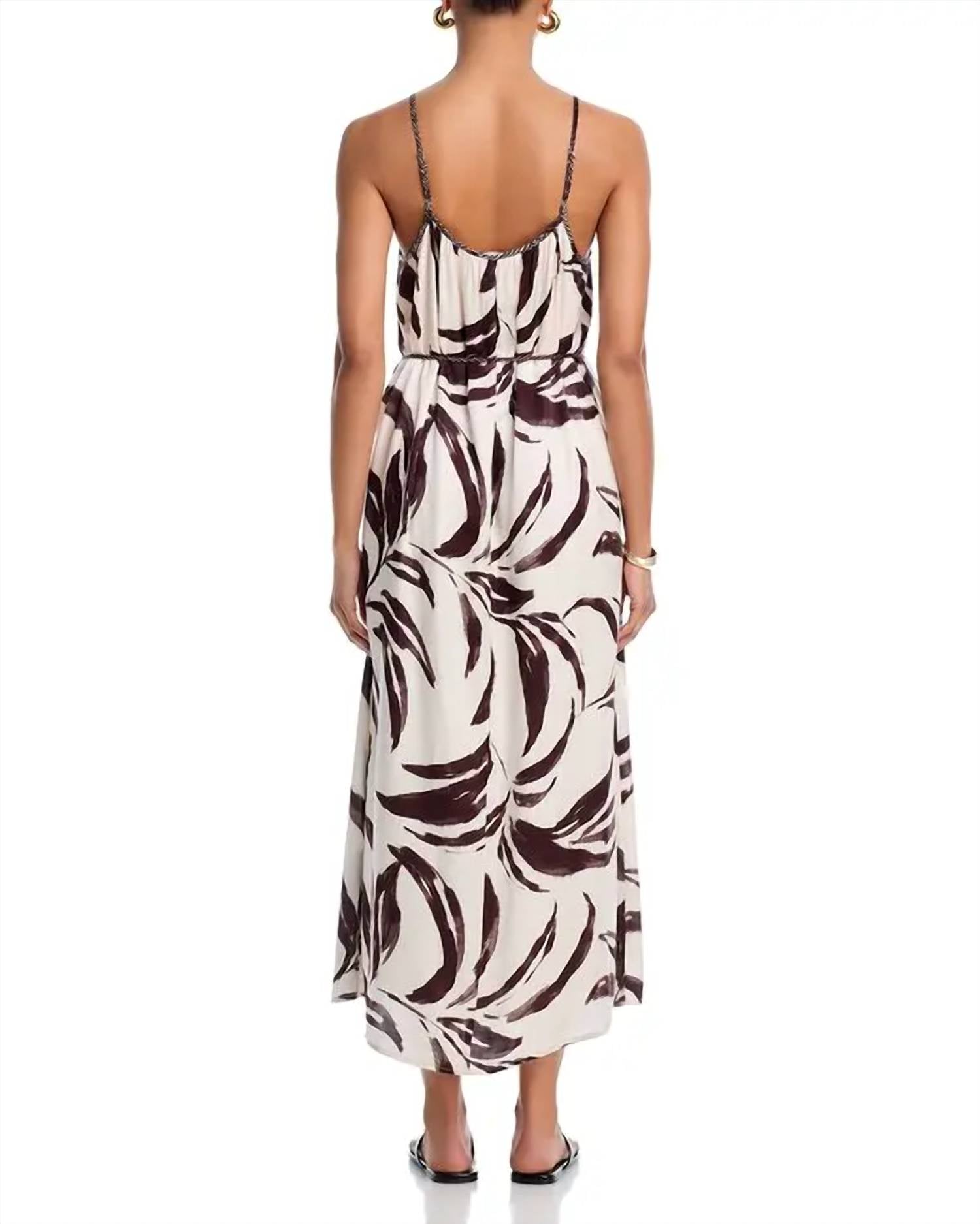 The perfect length dress does exist. Embrace Boho Chic with the Shirred Cami Midi Dress by Bella Dahl, a must-have for your vacation wardrobe. This women's dress in the Moroccan Palm Print features spaghetti straps and a midi length silhouette, perfect for the spring season. Crafted from 71% Rayon and 29% Silk, it boasts a patterned design and pull-on closure. Care is simple with hand wash instructions, making it a practical choice for effortless style.