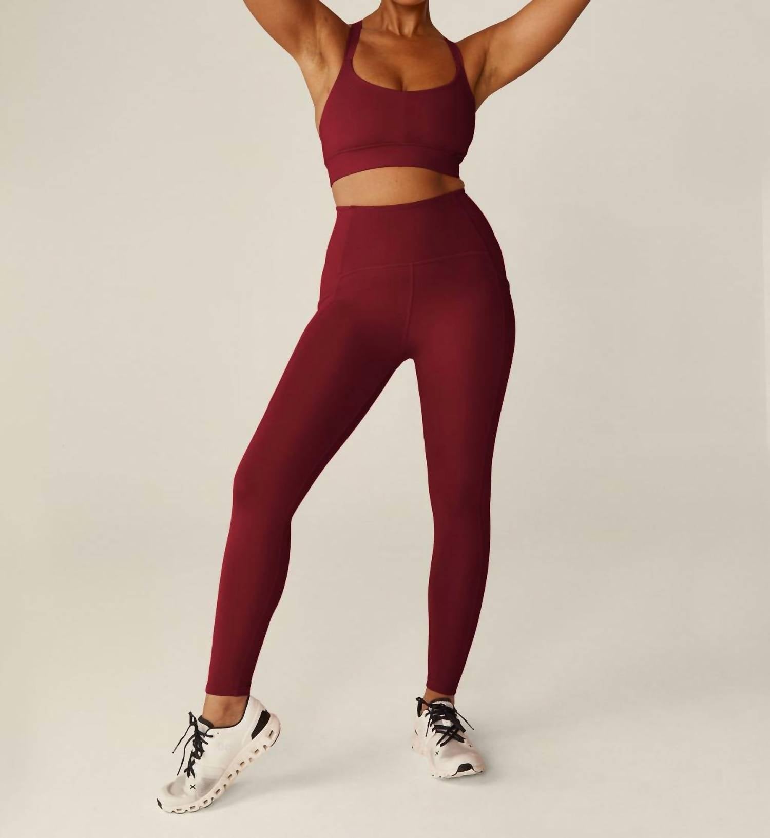The most comfortable and supportive sports bra you'll own. The Powerbeyond Strive Long Line Bra by BEYOND YOGA in California Merlot is designed for optimal support and style during workouts or busy days. This solid sports bra features adjustable straps and a secure powermesh panel at the center for medium to high support, enhanced by its body-contoured seams. Made from a nylon blend, the bra sculpts and molds to your body while its 2" encased elastic hemband ensures a secure fit. Care is simple with machine wash and tumble dry instructions, making it perfect for athleisure and fitness routines.