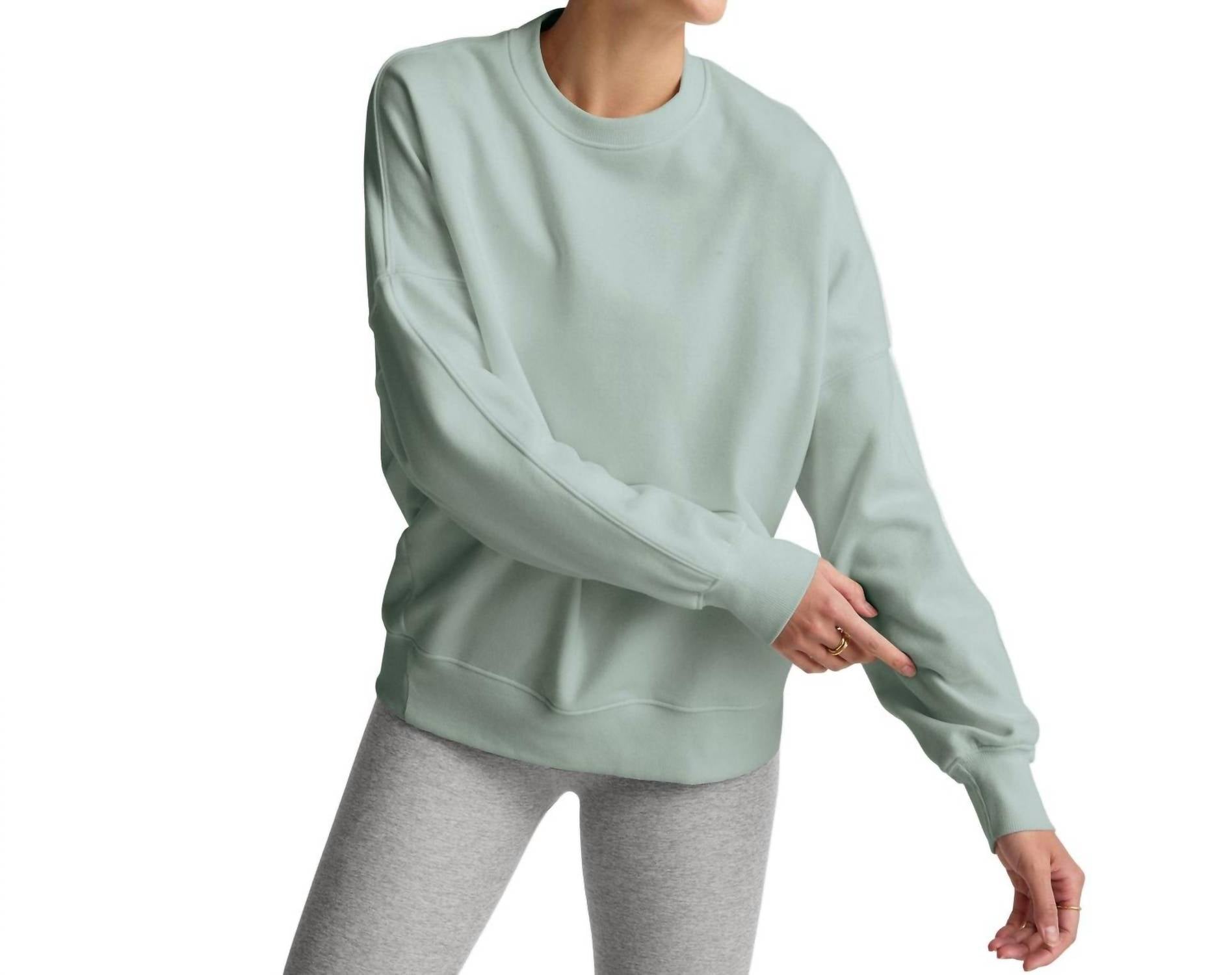 Cozy fabric, impeccable design - Meet the sweatshirt that you'll never want to take off. Introducing the Luxefleece Oversized Sweatshirt by Beyond Yoga in a serene Pale Blue, perfect for minimalist and vacation styles. This women's sweatshirt features long sleeves and a flattering crewneck design with ribbed hemband, neckband, and cuffs. Enjoy the luxurious feel with its oversized fit and long length, designed to uniquely flatter every shape. Closure: Pull on.