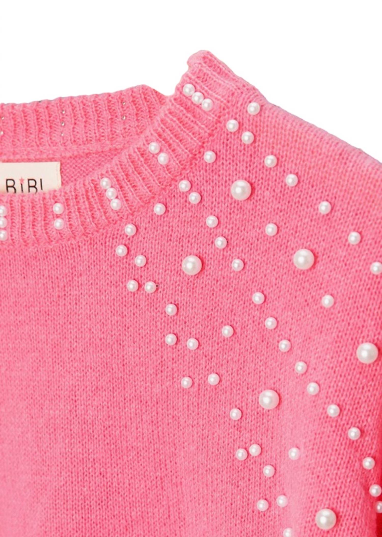 Experience the perfect blend of comfort and style with this trendy crew neck sweater, designed to effortlessly elevate your wardrobe. Pair it with your favorite denim and loafers for the perfect look. Introducing the Pearl Beaded Short Sleeve Sweater Top by BiBi, a playful yet elegant addition to your wardrobe in vibrant hot pink. Crafted from polyester, this crewneck design features textured, elbow-length sleeves and delicate pearl detailing for a chic look perfect for any stylish occasion, including Valentine's Day or birthdays. Its pull-on closure ensures ease and comfort, making it an effortless choice for fall. This women's piece beautifully combines versatility and style, promising to be a standout staple.