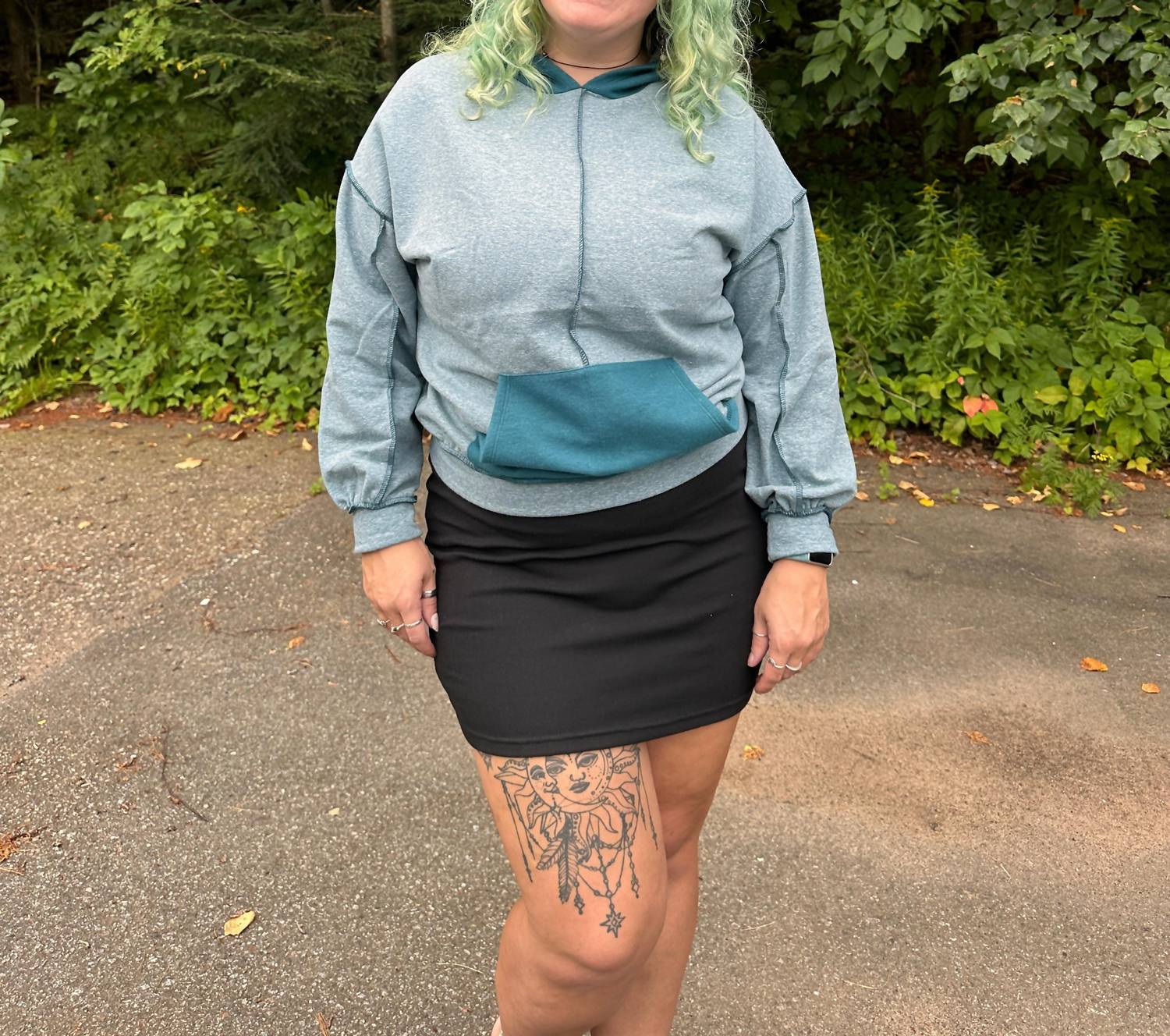 Cooler temps call for layering and we love this adorable sweatshirt for all the obvious reasons. Elevate your casual style with the Agnes Tri-blend Fleece Hoodie by BiBi, a must-have for transitional weather. This teal hoodie is crafted with long sleeves and a relaxed fit, complete with a kangaroo pocket and exposed seam detail for added flair. Closure: Convenient zip closure. This solid, streetwear-inspired piece is ideal for travel and perfect for both cool summer nights and fall days.