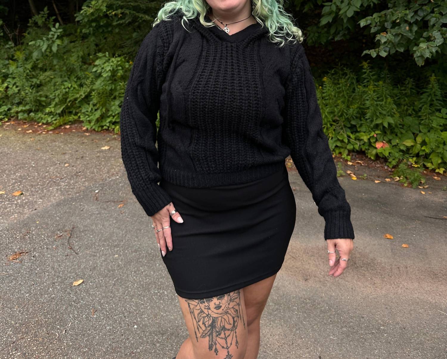 Whether you're running around town or lounging at home, this sweatshirt works for both. The Ellie Oversized Cable Knit Hoodie by BiBi is your go-to piece for those cool summer nights and crisp fall days. This women's black hoodie features long sleeves and a textured mixed knit design, offering a cozy oversized fit. The hooded neckline adds an extra layer of warmth with its convenient drawstring detail. Crafted without pockets for a streamlined look, this hoodie has a pull-on closure for easy wear.