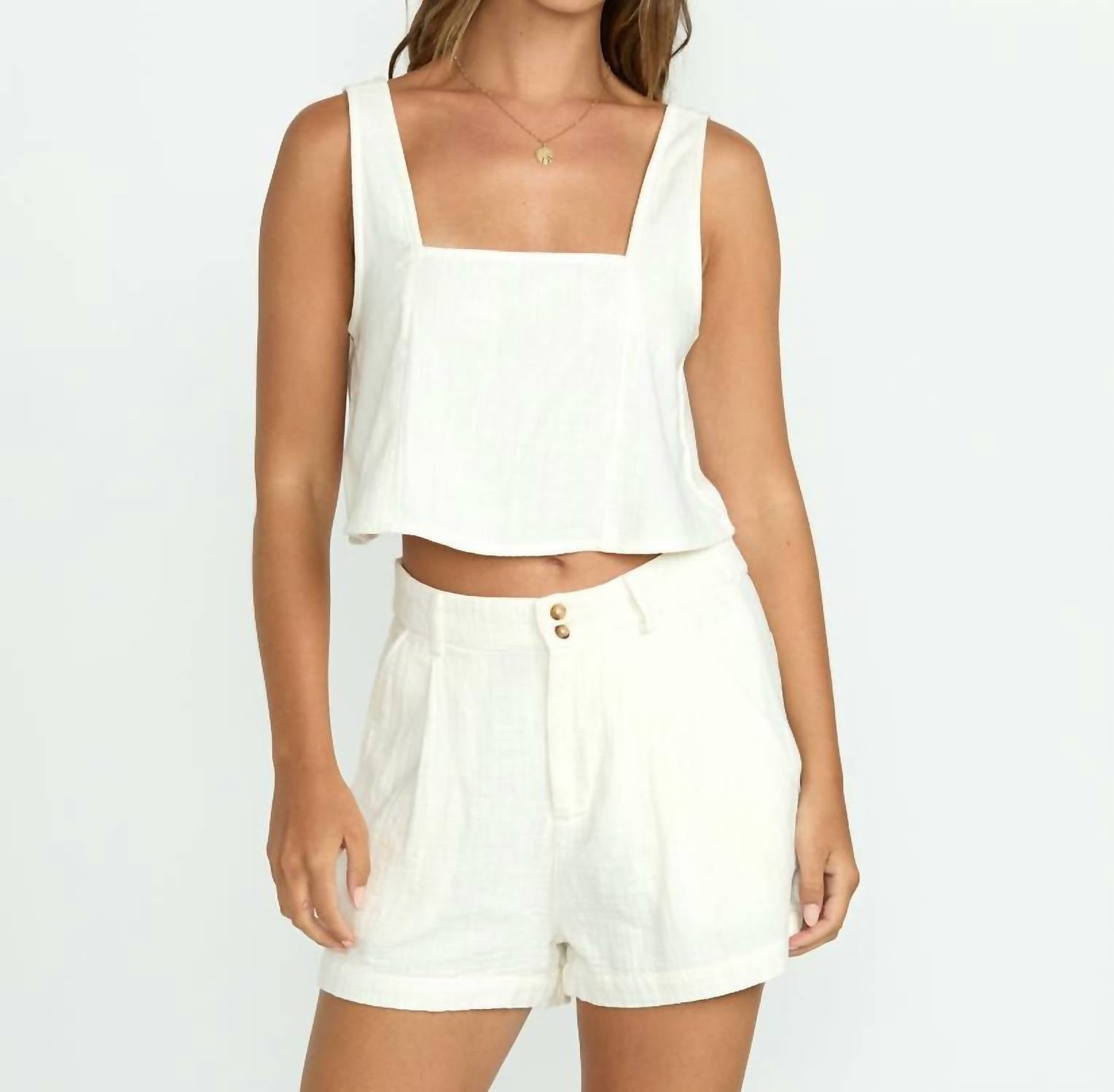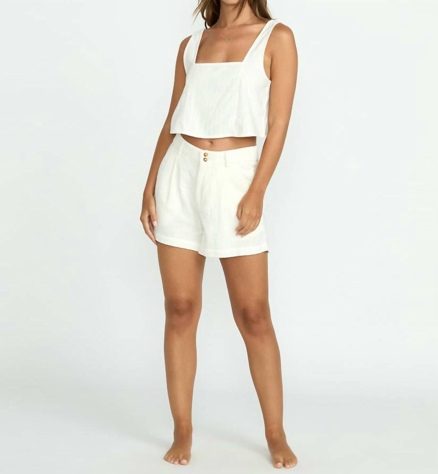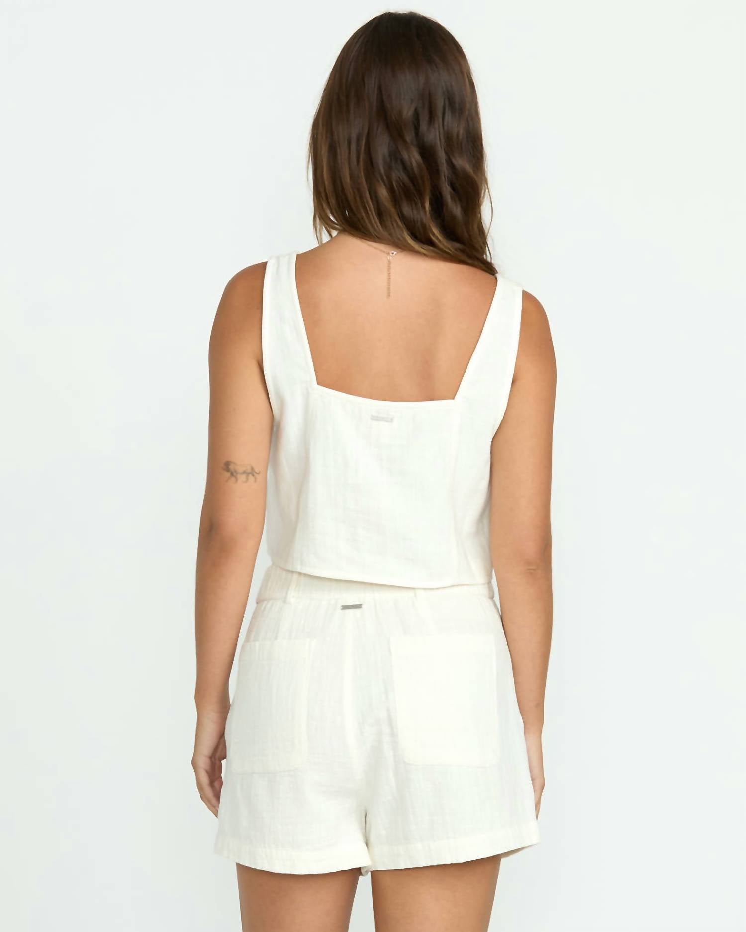 Pair this crop top with your favorite high-waisted jeans or maxi skirt. Elevate your summer wardrobe with the Open Skies Top by Billabong, a chic essential crafted from 100% cotton double slub gauze in a stylish cropped fit. Designed in a classic white hue, this sleeveless crop top features a flattering square neckline, perfect for sunny vacation days. The pull-on closure ensures easy wear, making it a practical yet fashionable choice for any summer outing.