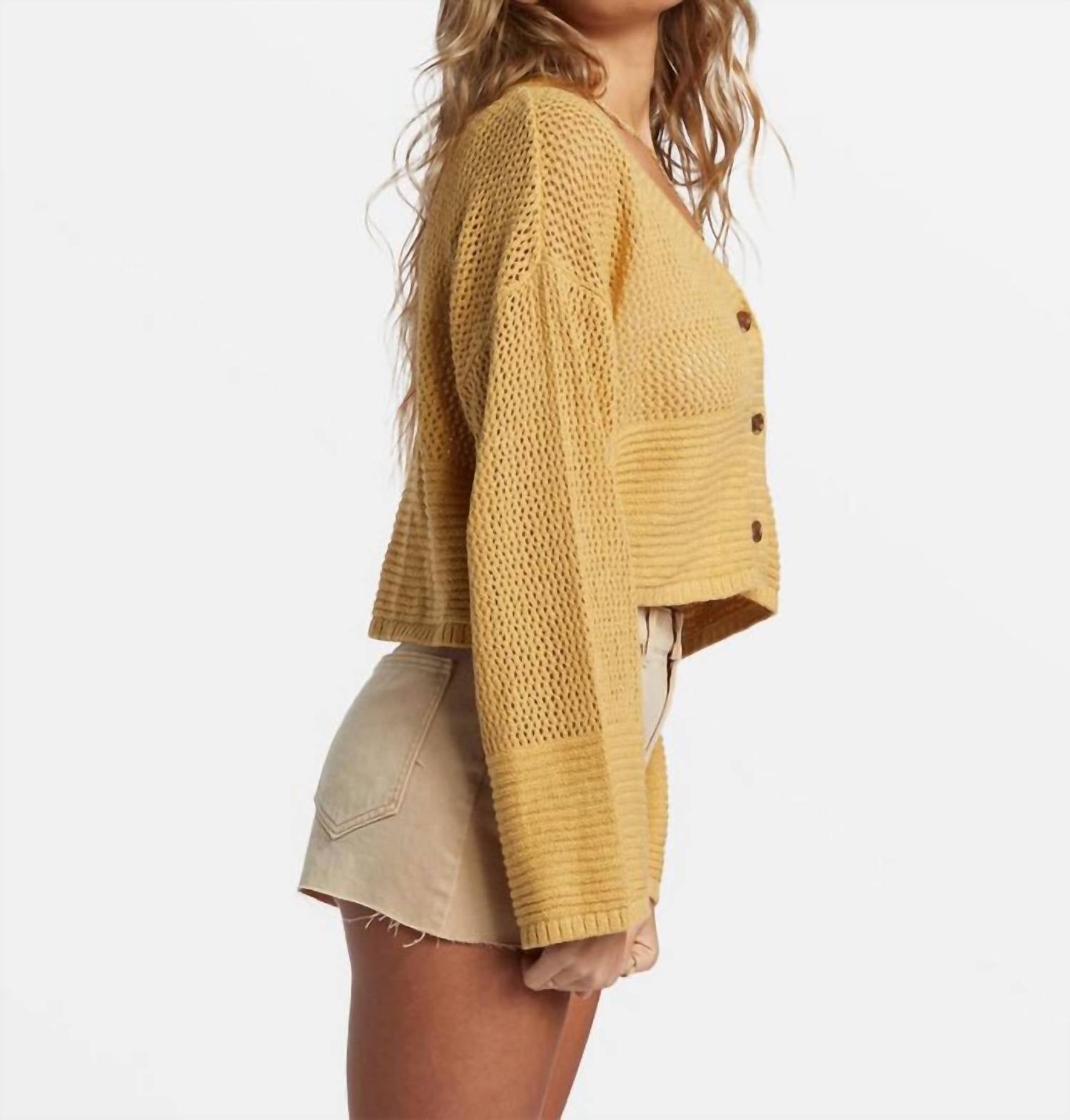 Throw this adorable cardigan over any cami or tank top. Introducing the Tavi Cardigan by Billabong, a stylish choice that channels coastal vibes with a cropped and boxy fit. This long sleeve cardigan is crafted from a cotton-nylon blend, featuring a V-neck and button closure for easy wear. 90% Cotton, 10% Nylon. Country of Origin: China. Machine wash.