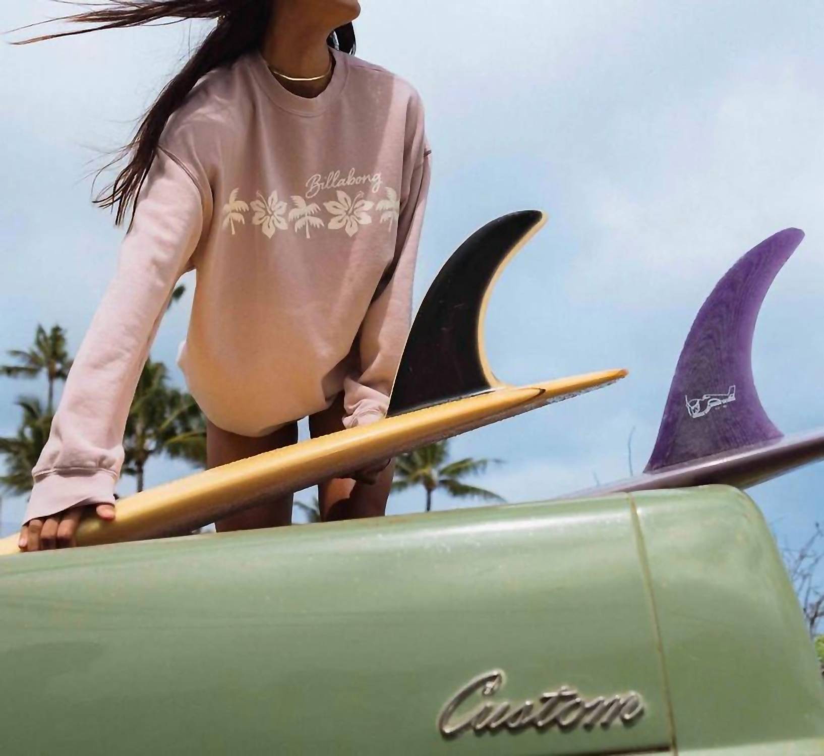 Cozy fabric, impeccable design - Meet the sweatshirt that you'll never want to take off. Cozy up in style with the Billabong Ride In Crew Sweatshirt, a standout piece in a soothing haze color. Featuring long sleeves and crafted from an 80% cotton, 20% polyester fleece blend, this oversized pullover offers a bold screen print for a sporty streetwear vibe. Made for casual lounging and easy outings, it boasts a crewneck design with a convenient pull-on closure. Care for it effortlessly with machine wash instructions.