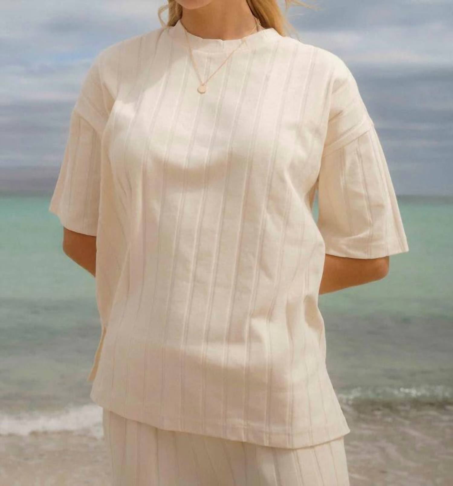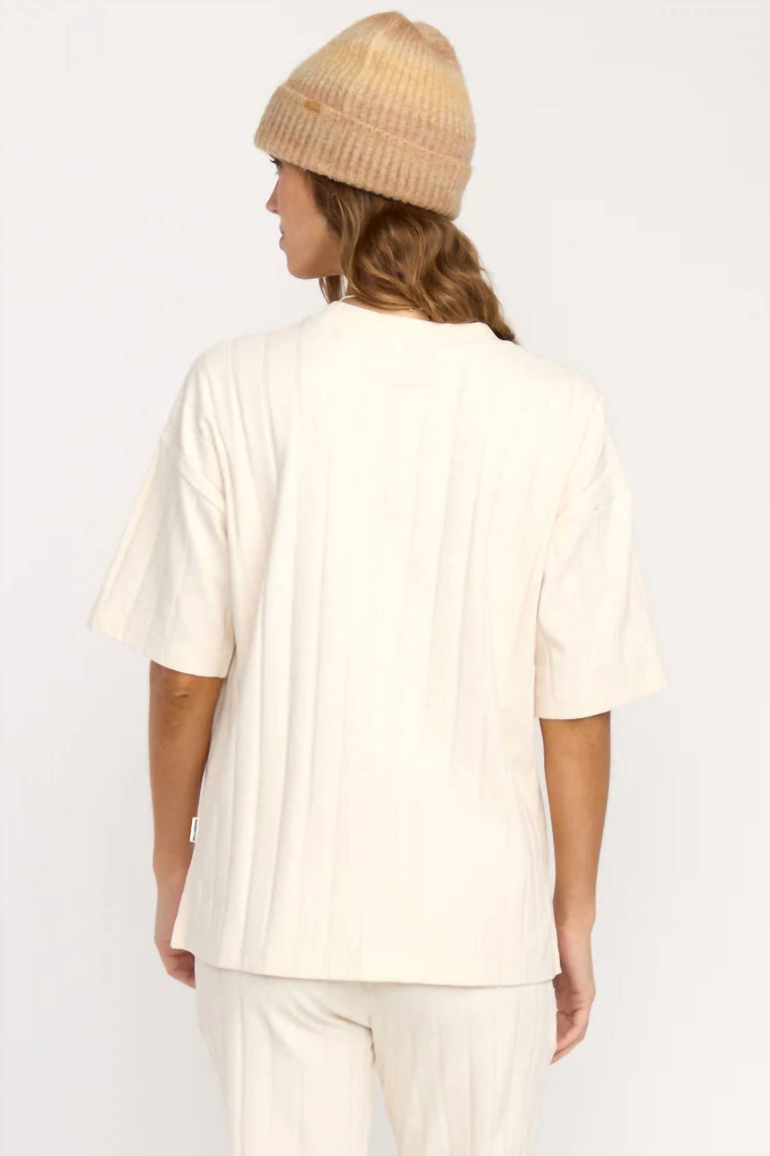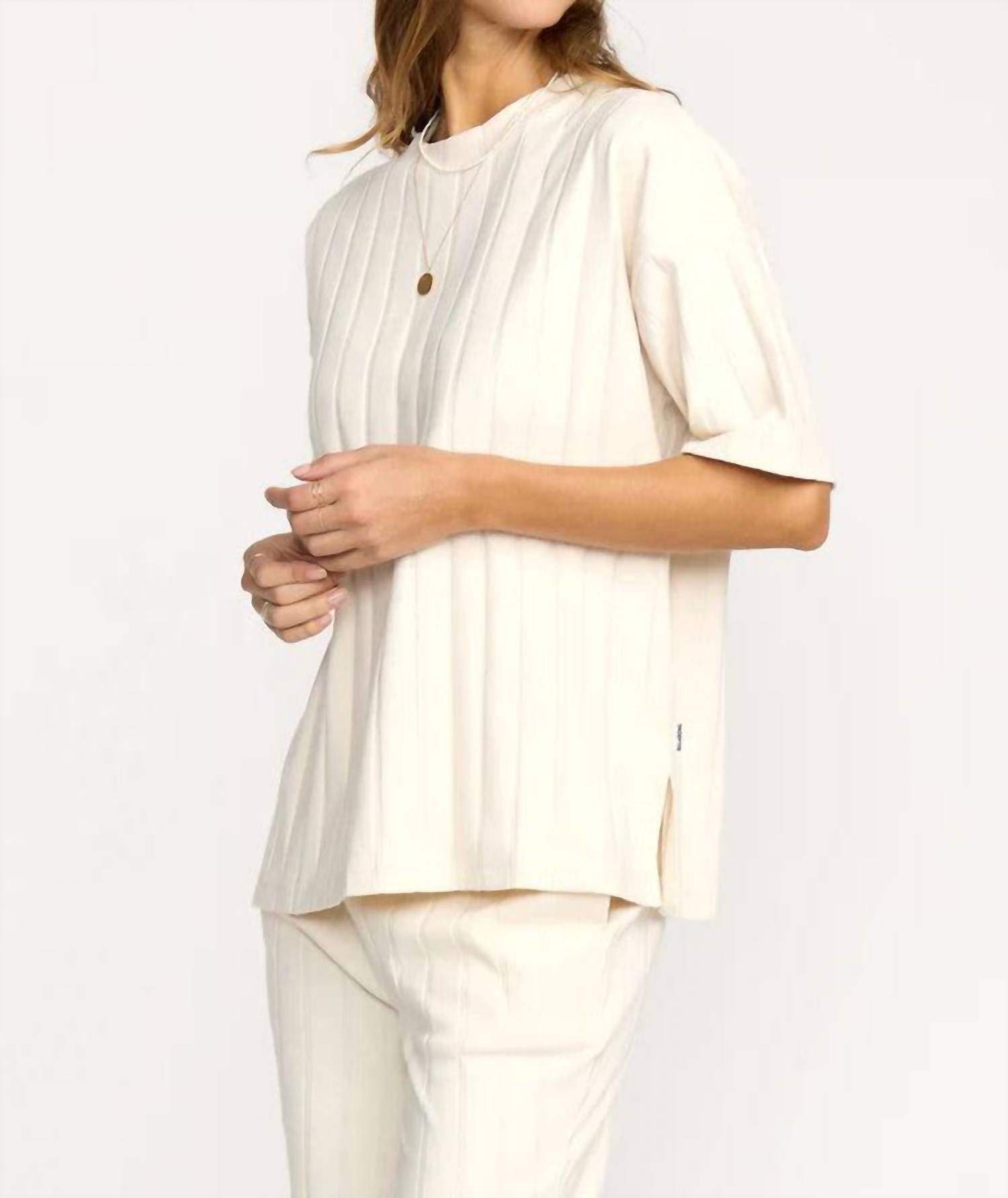 The short sleeve tee you'll want in every color. Elevate your casual wardrobe with the Cass Top by Billabong in a chic Whitecap hue. This women's short sleeve tee features a crewneck design and is crafted from 95% Cotton and 5% Elastane rib jersey for ultimate comfort and flexibility. The oversized fit and split side seams add a touch of modern flair, complemented by a subtle metal plate detail. Enjoy the ease of a pull-on closure and care for it effortlessly with machine wash and tumble dry instructions.