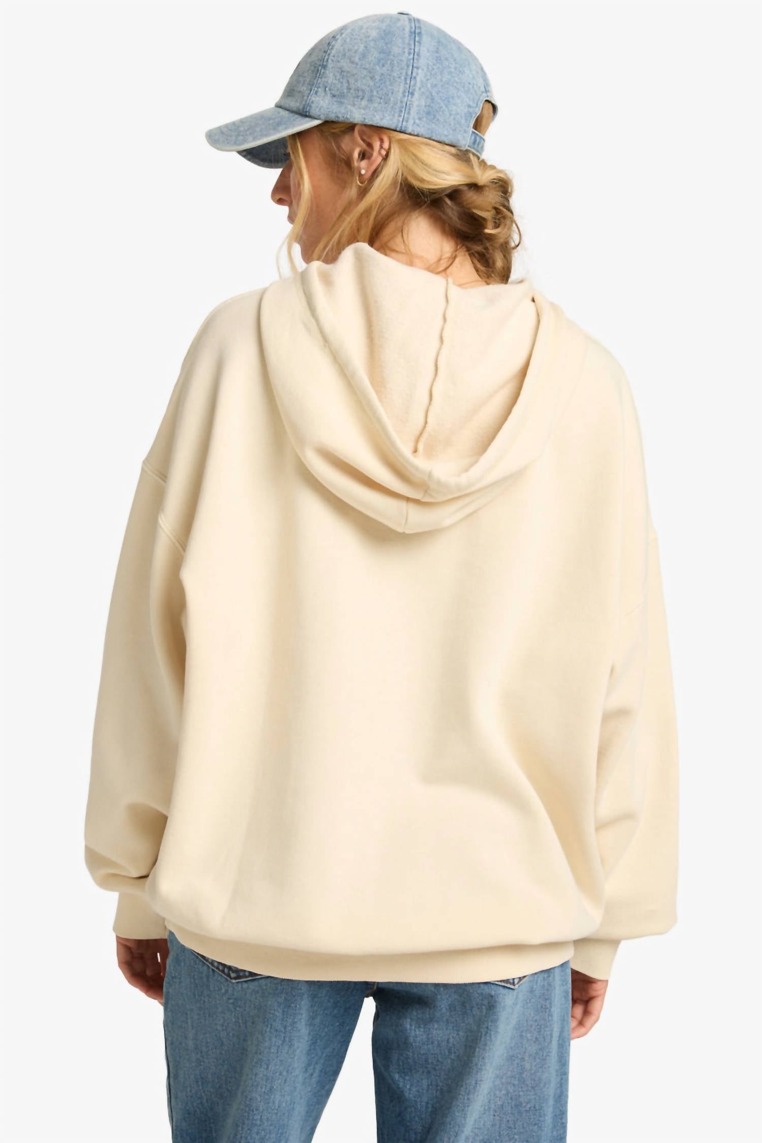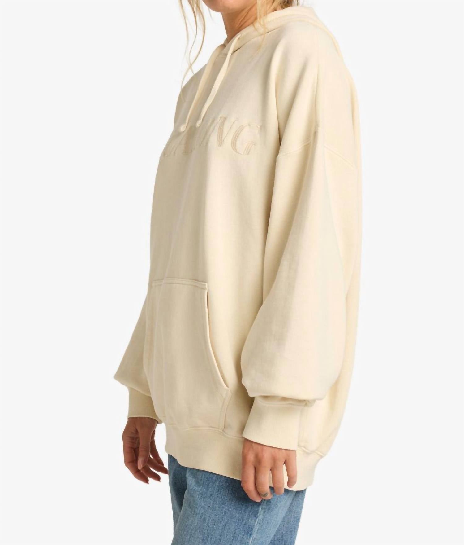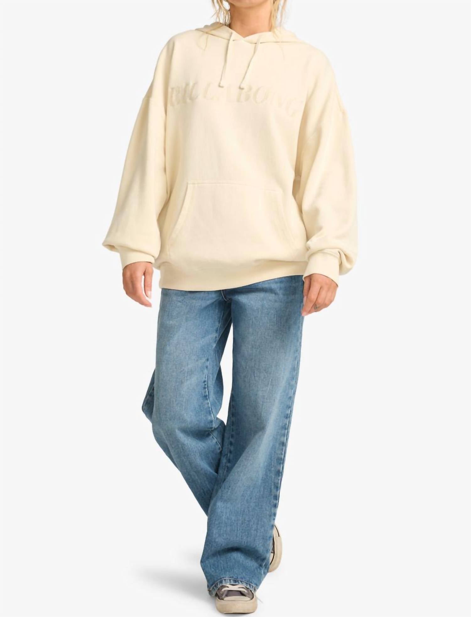 Whether you're running around town or lounging at home, this sweatshirt works for both. Elevate your casual wardrobe with the Billabong Hi Tide Dip Hoodie, a streetwear essential in Whitecap. This oversized pullover hoodie boasts the coziness of long sleeves and brushed fleece, with a composition of 80% cotton and 20% polyester. Designed with a roomy kangaroo pocket and striking chest embroidery, it offers both style and functionality. Closure: Pull on. Care: Machine wash, tumble dry.