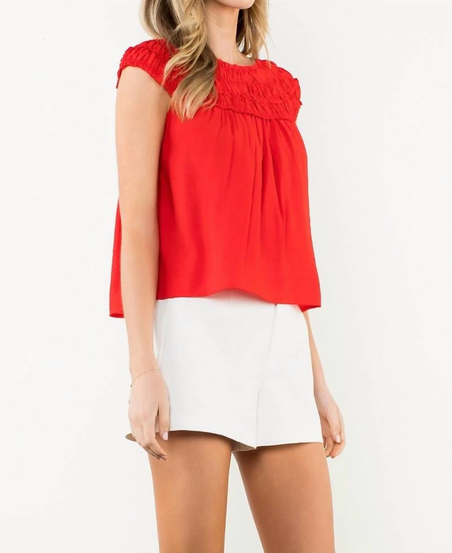 Pair this with your favorite jeans and slides for your next girls night out. Introducing the Love Shirred Round Neck Top by THML, a chic addition to your wardrobe in a vibrant red hue. This sleeveless blouse is composed of 80% Tencel and 20% Nylon, with a comfortable scoop neckline and a pull-on closure. Its lightweight Lyocell material makes it perfect for spring evenings or a stylish dinner party look. Care: Machine wash.