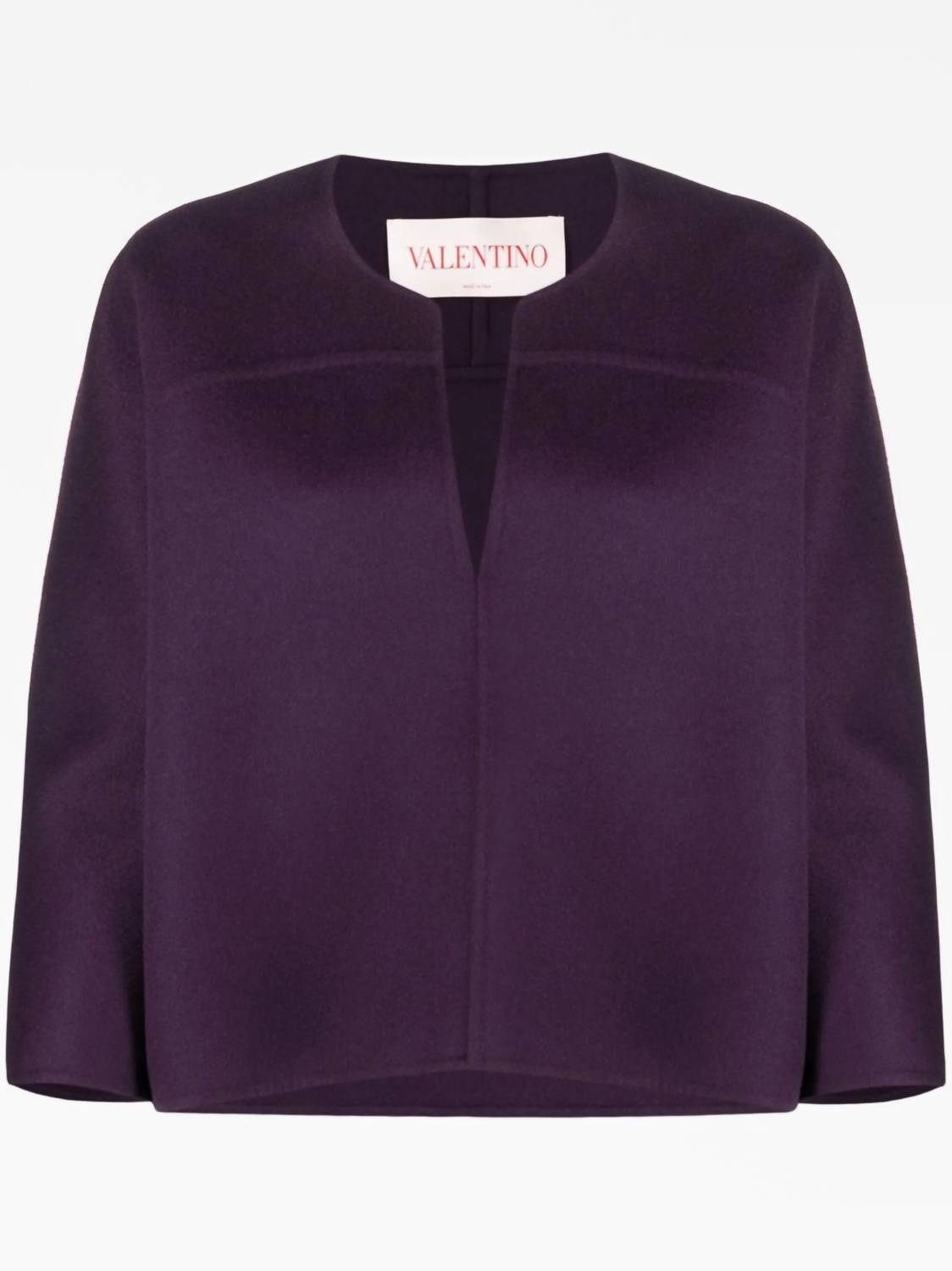 Introducing the V-neck Cropped Sleeve Knitted Top by Valentino, offered in a beautiful Ripe Plum shade for an elevated feminine touch. This top is defined by its three-quarter sleeves and luxurious composition of 90% virgin wool and 10% cashmere. Originating from Italy, it features a pull-on closure and a sleek knitted construction. Maintenance is straightforward with dry clean instructions, ensuring this piece remains a lasting staple in your wardrobe.
