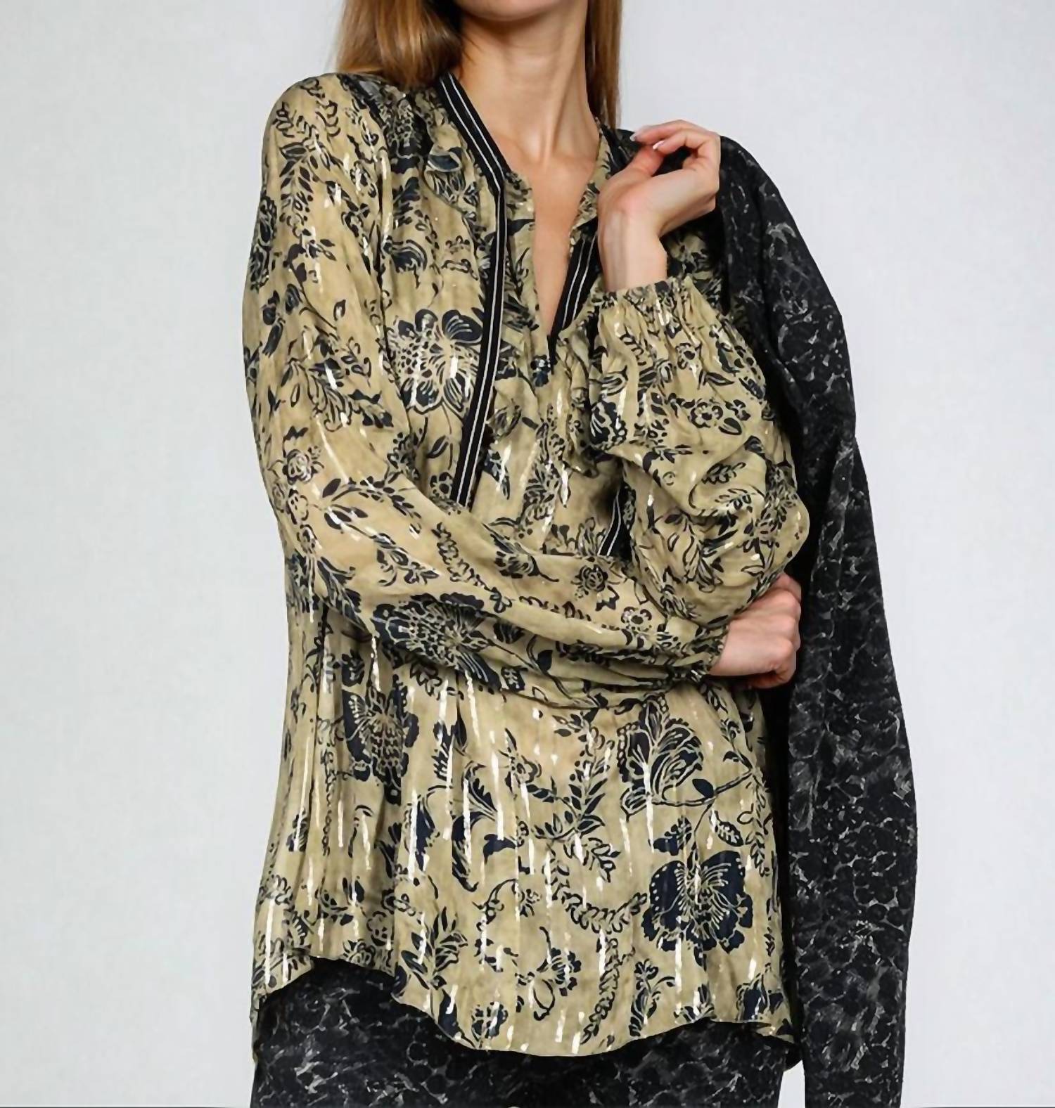 A versatile blouse that works from desk to dinner! Signature Beate Heymann with contrast tie detail at neck. Long sleeves with elastic cuff. Little bit of Shimmer.