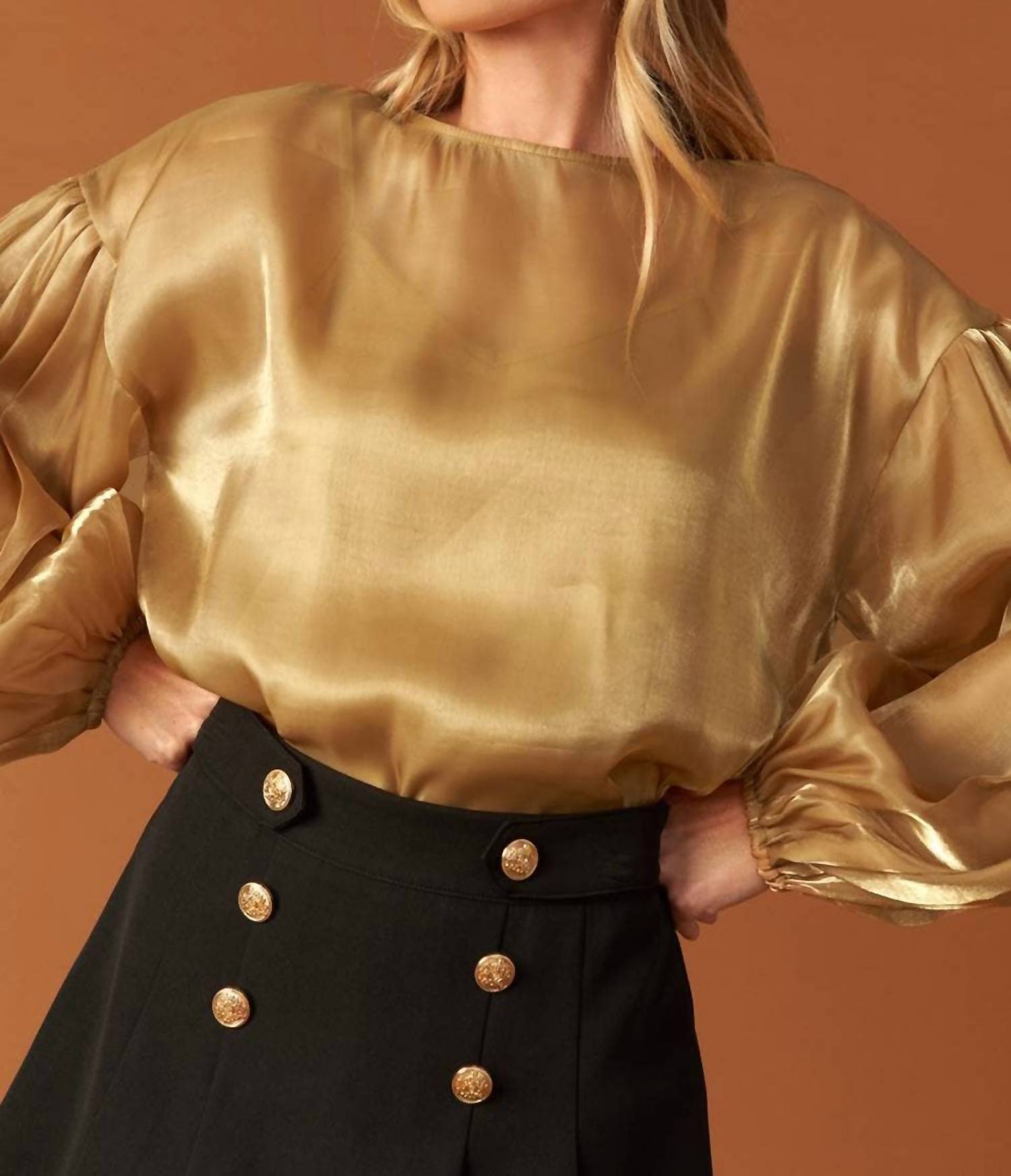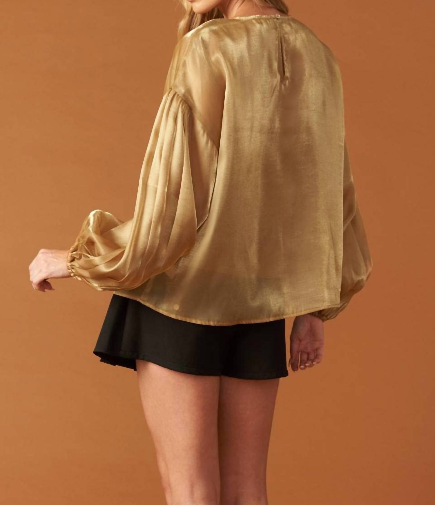 Unveil the elegance of the Drop Shoulder Blouse from FLYING TOMATO, a stunning piece in a rich bronze hue perfect for evening events. Featuring long balloon sleeves and a sophisticated dropped shoulder design, this top is crafted entirely from polyester for a luxurious feel. It includes a convenient back neck button closure and measures approximately 23 inches in length, ensuring a perfect fit for various occasions. Made for ease of care, simply hand wash and enjoy its timeless style for years to come. Model is 5'8" and wearing a size small.
