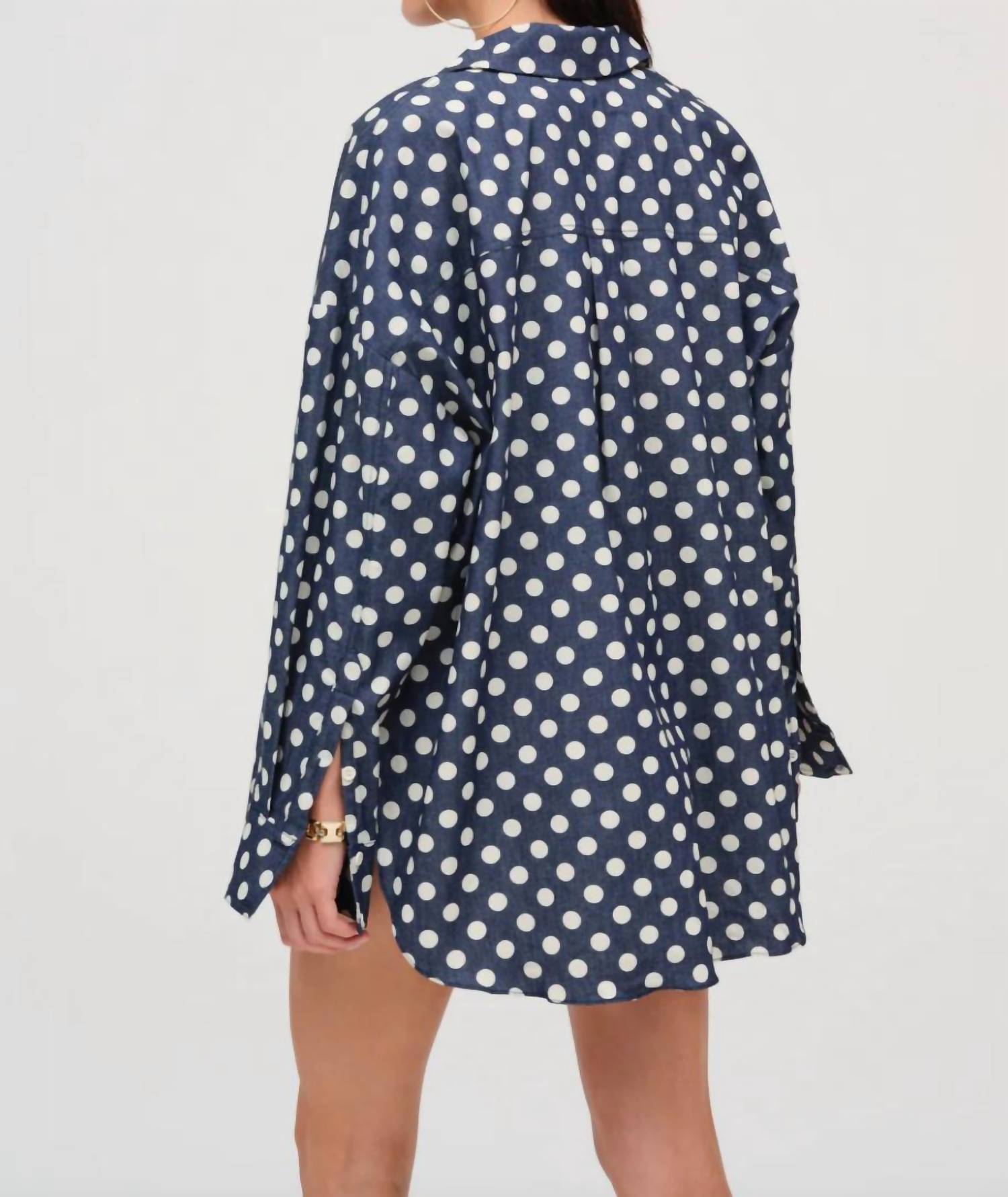 A timeless blouse that will never go out of style. Designed for the vintage-loving Muse, the Dolly Dot button-down top evokes the designs of a nostalgic era with its charming polka dot print. This long sleeve button down shirt features a standard shirt collar and pleated sleeve ends.