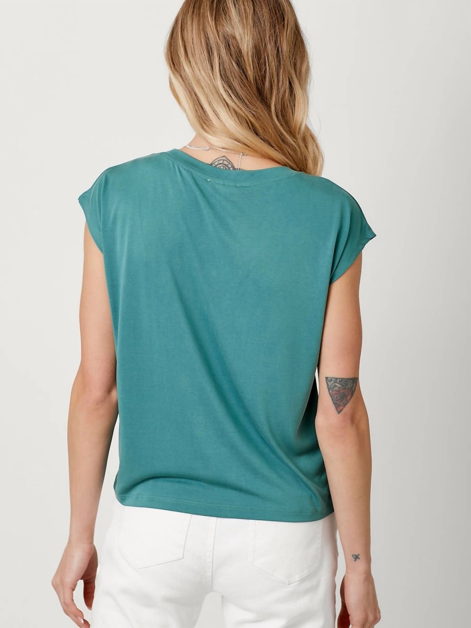 A timeless blouse that will never go out of style. Elevate your wardrobe with the Ruche Cap Sleeves Top by Mystree, crafted for the minimalist trend in a vibrant teal hue. This top features cap sleeves and a ruched front with a drawstring for added flair. Made from a blend of 68% Modal and 32% Polyester, it offers a comfortable fit with a pull-on closure. Care is simple with machine wash instructions, making it an excellent choice for travel and summer occasions. Model wears size S and stands at 5'8".