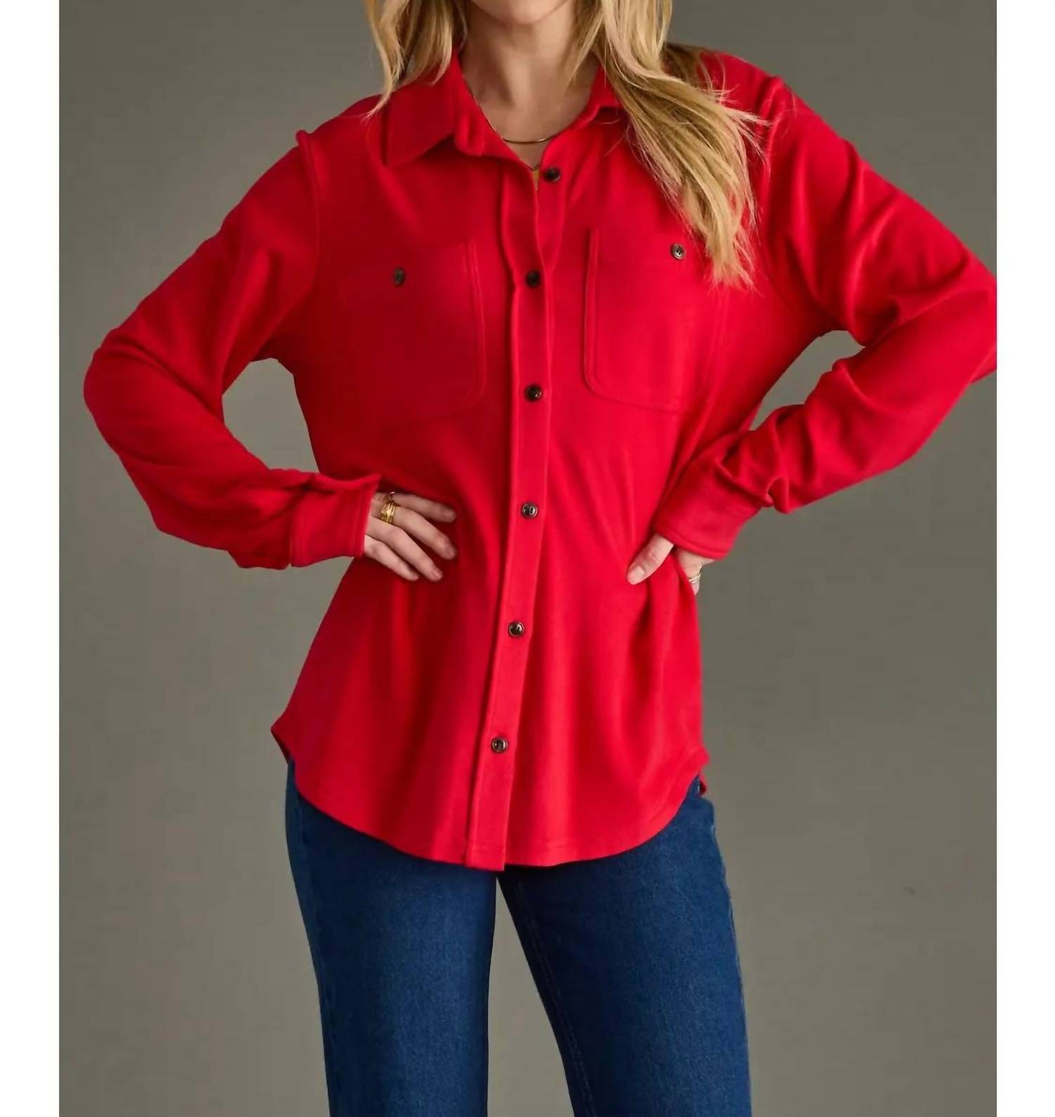 This button down shirt is comfortable yet polished. Embrace vibrant style with the Clara Top from Panache Apparel, a super soft button-up shirt in striking red. This long sleeve shirt is crafted from 75% rayon, 15% acrylic, and 10% spandex, ensuring a relaxed fit that stretches while maintaining its shape. Featuring a classic collar and practical button closure, this piece adds a playful yet sophisticated touch to any holiday party ensemble.
