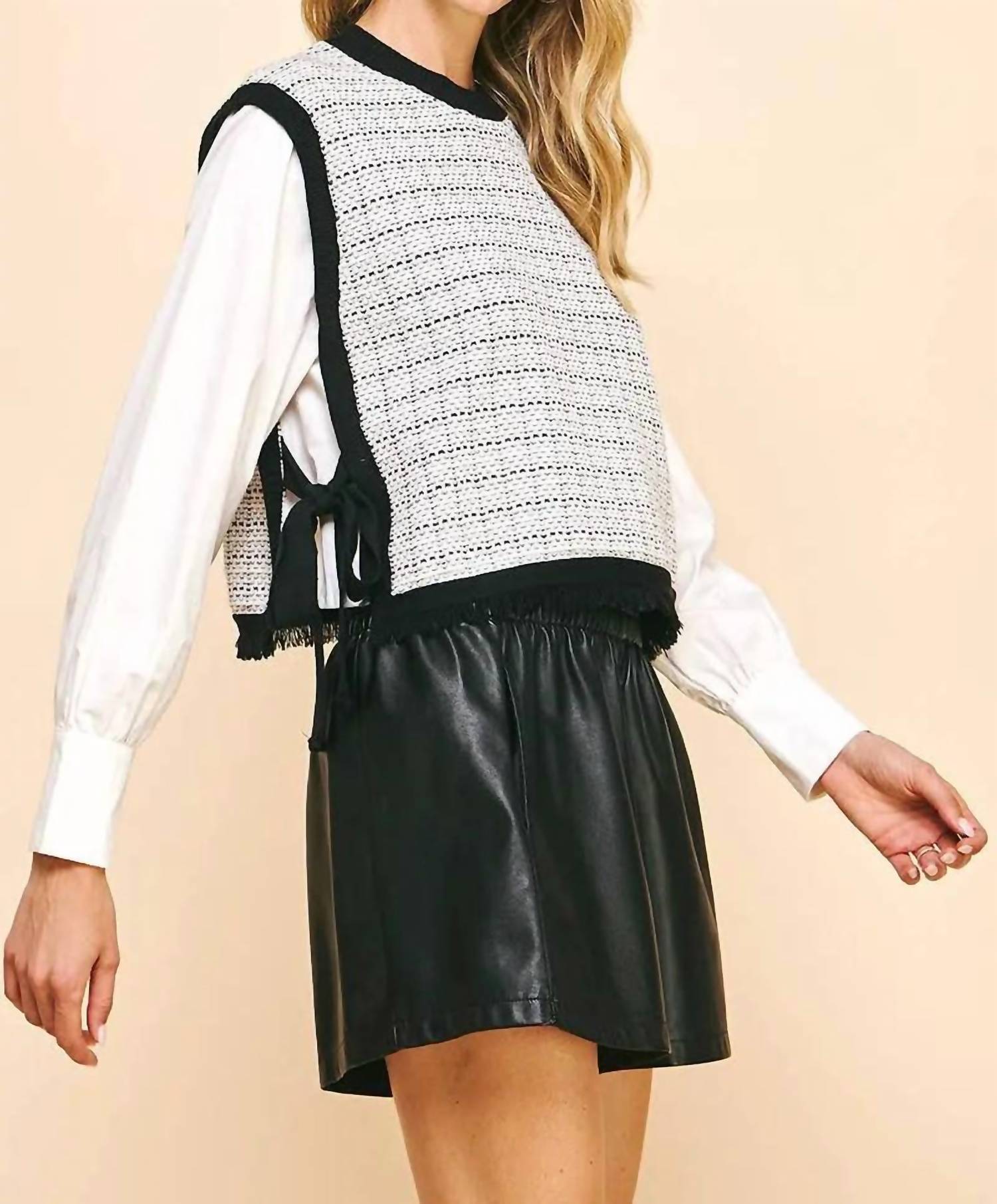 A versatile blouse that works from desk to dinner! Introducing the Margaux Woven Knit Blouse by PINCH, a minimalist piece perfect for the fall season. This elegant blouse features long sleeves and a crewneck, with textured black-and-white panels creating a striking silhouette. Designed as a pull-on style, it offers effortless sophistication suitable for dinner parties or a Thanksgiving gathering. Care: Machine wash, making it a practical choice for the modern woman's wardrobe.