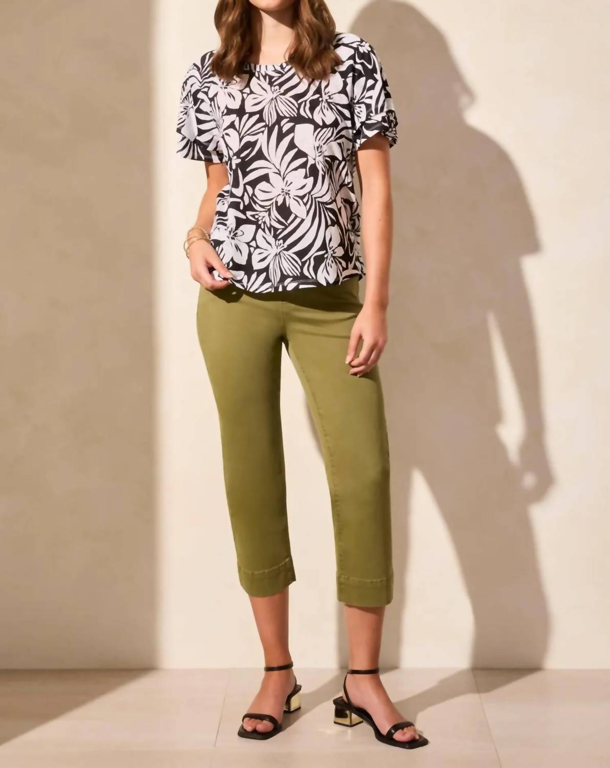 A timeless blouse that will never go out of style. Discover the Linen Blend Ruffle Sleeve Top by TRIBAL, designed for those seeking both comfort and style. This sleeveless blouse features raglan armholes and a scoop neckline, crafted from a breathable linen blend of 55% Linen and 45% Rayon, ensuring a relaxed fit. The eye-catching floral pattern and ruffle sleeves lend a boho chic flair, making it ideal for spring vacations or Easter gatherings. With a pull-on closure, this top is easy to wear and care for; simply hand wash in cold water and line dry.