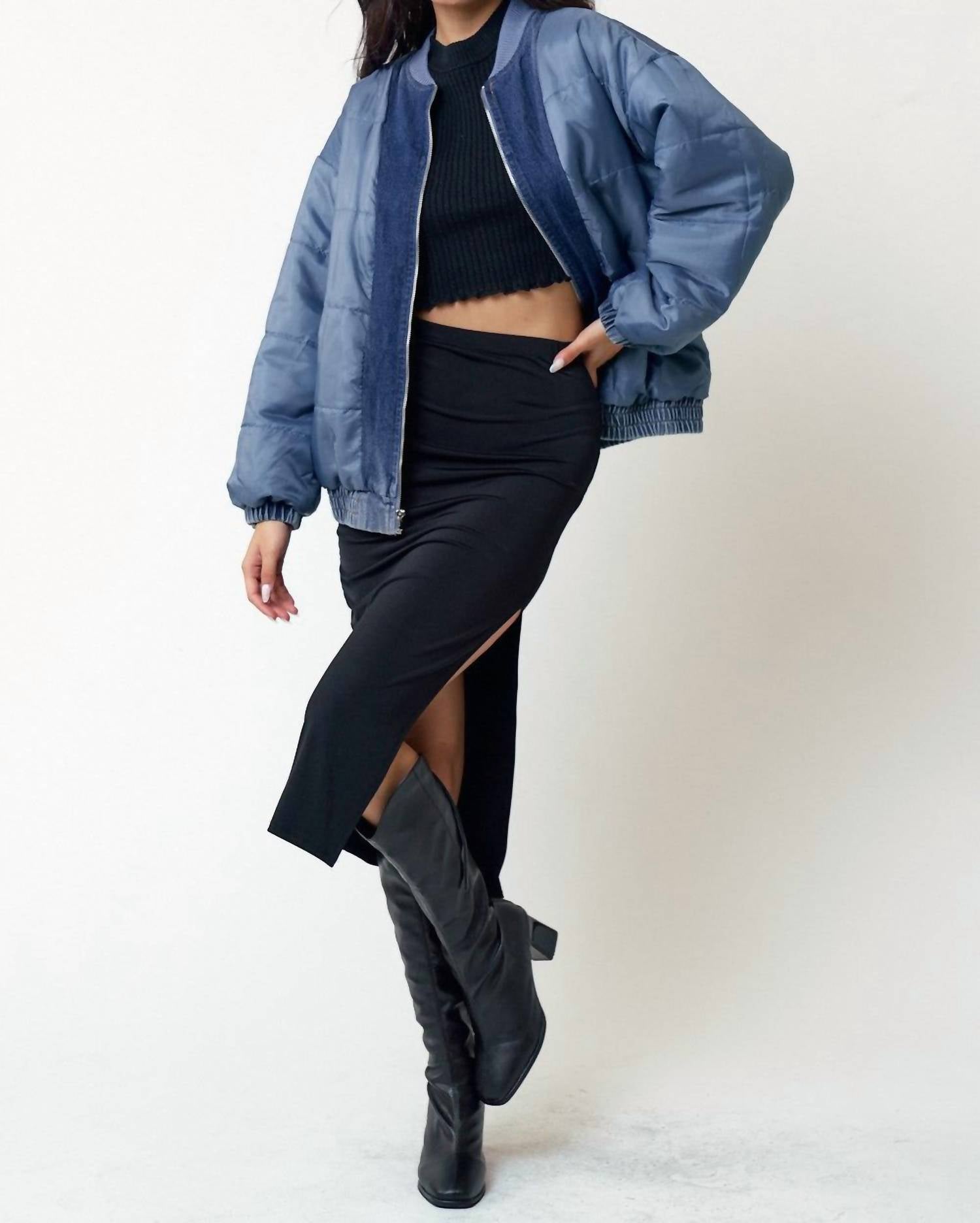 A jacket so versatile you can literally wear it with anything. Introducing the Women's Into The Blue Jacket by Blue Blush, a standout piece for your vacation wardrobe. This oversized, boho chic jacket offers a solid blue hue and features long sleeves with a practical zip closure, highlighted by its reversible cargo denim design. It's perfect for spring, designed to offer both style and functionality with handy pockets and a classic collar. Its unlined construction makes it a versatile addition to any casual ensemble.