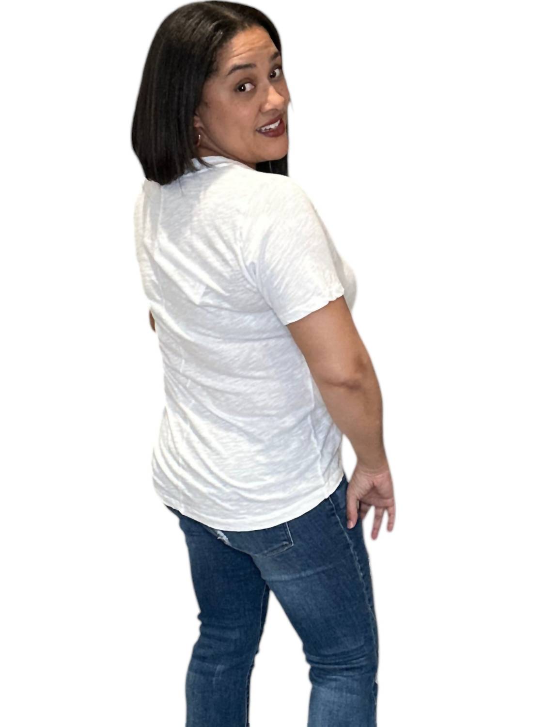 V-neck with shoulder seam detail for added style. Breathable and perfect for warm weather wear. Made from 100% cotton slub for a soft, lightweight feel.