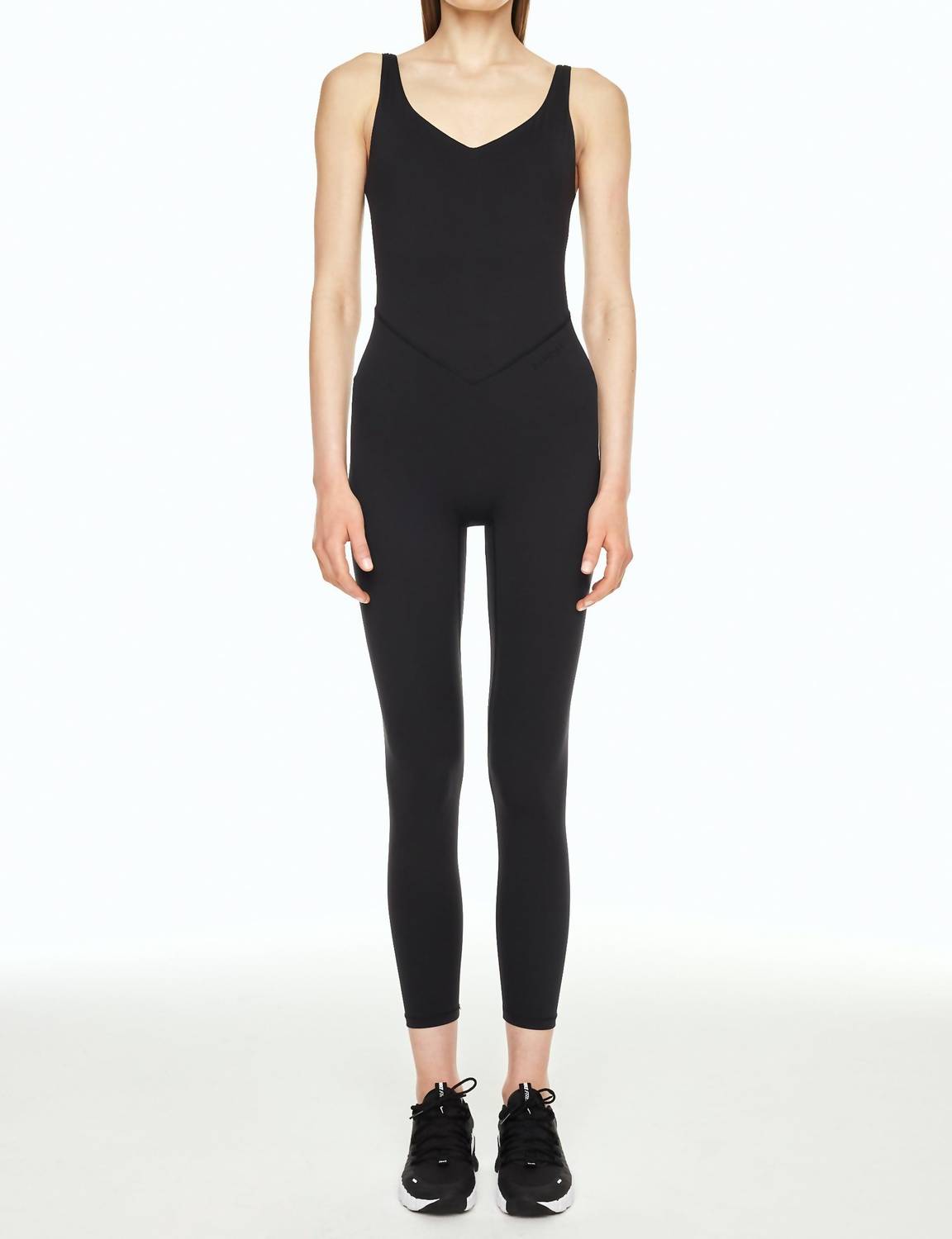 Who doesn't love a good bodysuit? Introducing the BANDIER V-Neck Tempo Full Length Catsuit in sleek black, perfect for enhancing your summer workout wardrobe. This sleeveless design is crafted from a 50% nylon and 50% spandex blend, offering a four-way stretch for optimal flexibility during low-impact activities. Featuring a V-neckline, built-in bra, and lined gusset, the catsuit provides comfort and support with a 26 1/4" inseam for a flattering fit. Enjoy the convenience of a pull-on closure and easy maintenance with machine wash and lay flat to dry instructions.