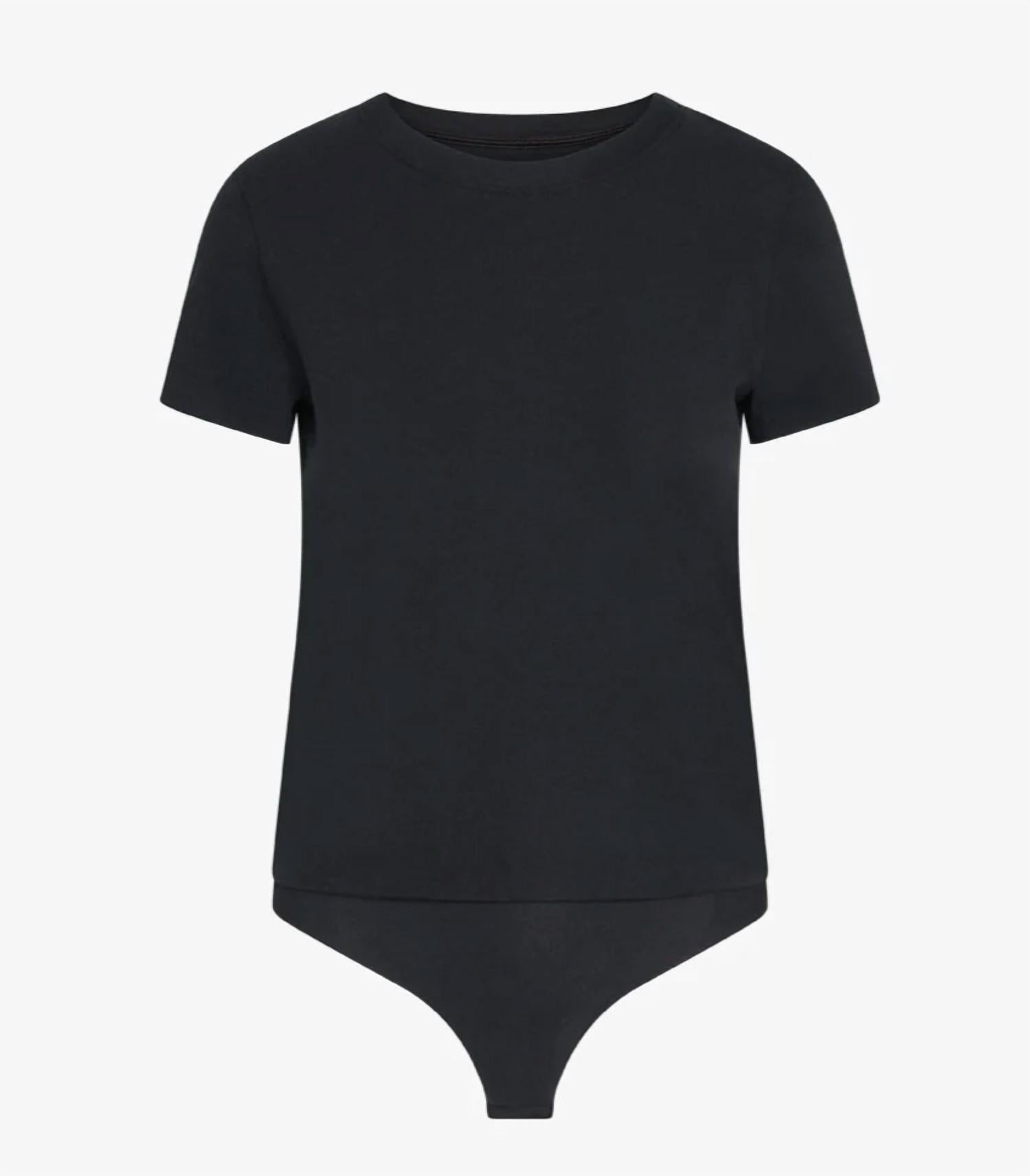 Constructed with commando’s signature raw-cut thong bottom, this cotton crewneck tee bodysuit has the look of a classic white tee while always staying tucked and leaving you line-free. Long staple Italian cotton (80% Cotton, 20% Elastane). Fit-tested by real women. High stretch and recovery. Retains shape after wash and wear. Pilling resistant. Raw-cut edges. High fabric breathability. Ultra-soft. Machine washable.