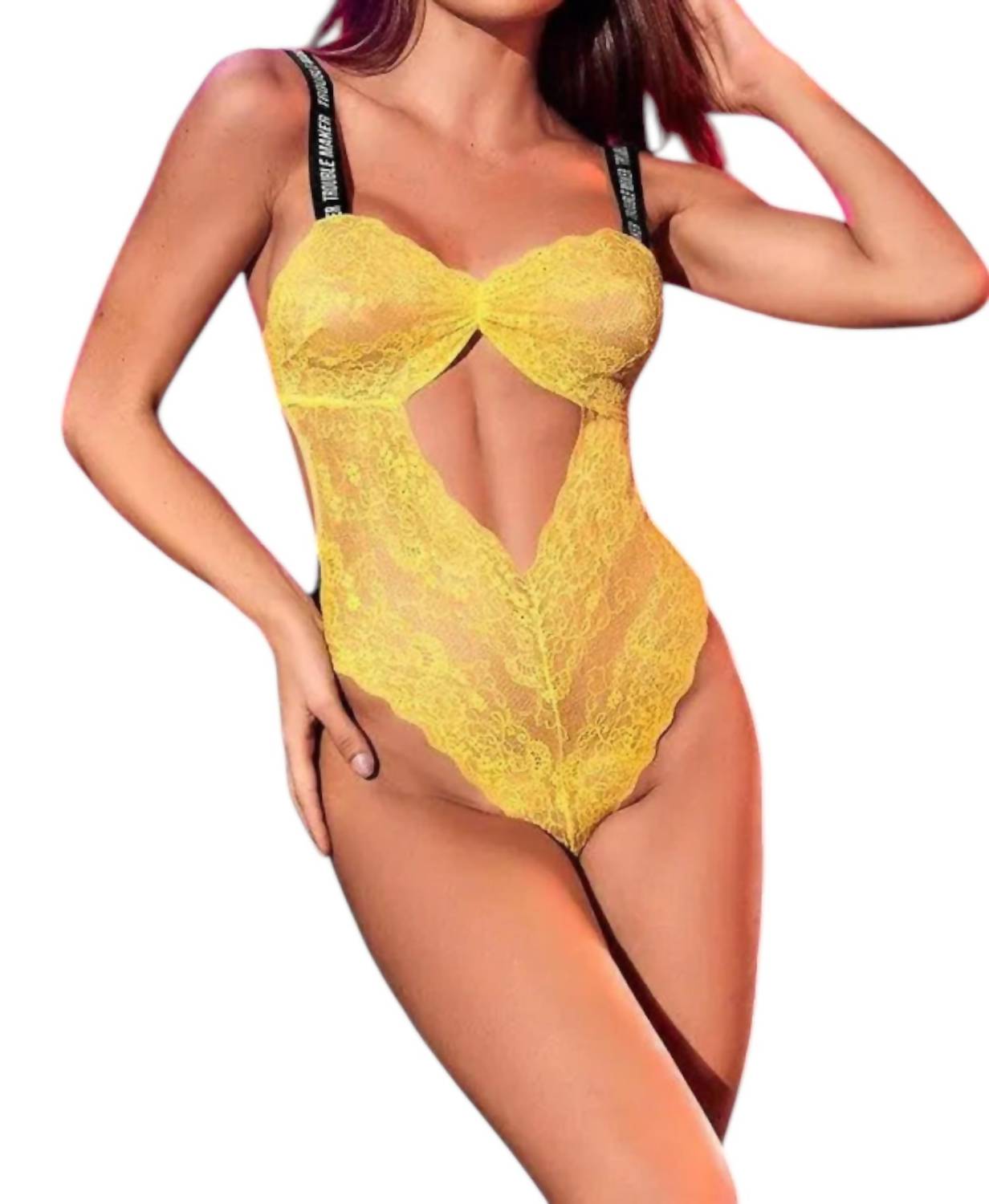 Who doesn't love a good bodysuit? Elevate your look with the Injection Elastic Bodysuit by Mapale, a striking piece in vibrant yellow perfect for any special occasion. This sleeveless bodysuit features a textured pattern and a sweetheart neckline, accented by a front cutout and ruched details for added allure. Designed with thong coverage and a convenient pull-on closure, it effortlessly combines style and comfort. Ideal for the summer season and crafted with quiet luxury in mind, this bodysuit adds a splash of color and sophistication to your wardrobe.