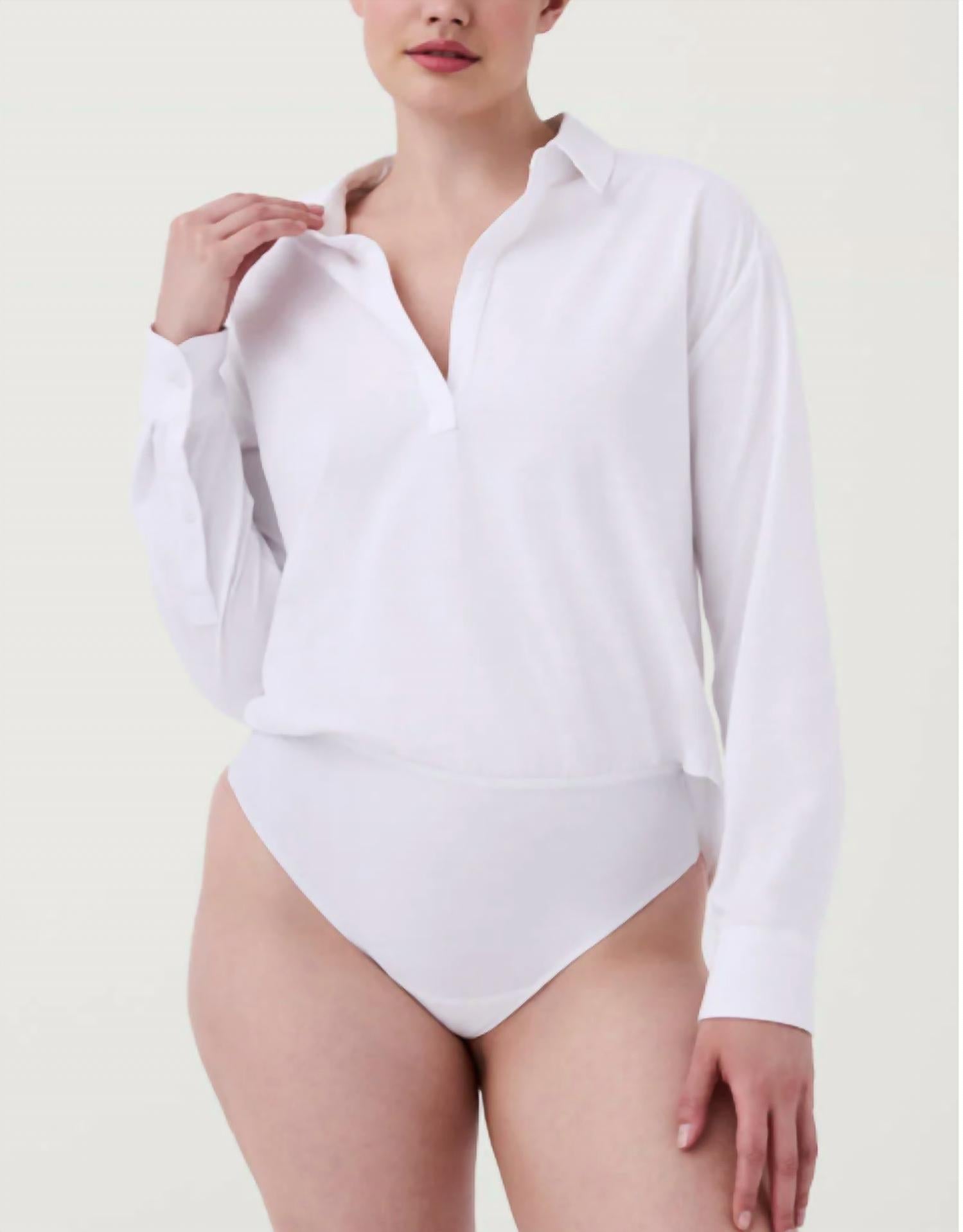 Who doesn't love a good bodysuit? The perfect solution – a blouse that always stays tucked! The Blouse Bodysuit features a built-in shaping panty for lower tummy control and a loose fit top for a traditional blouse look.