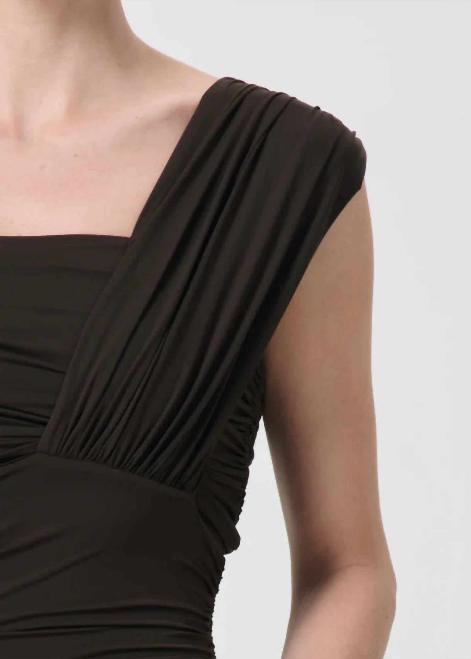 Who doesn't love a good bodysuit? Introducing the Etienne Off The Shoulder Bodysuit by AGOLDE, a contemporary piece designed for evening events and spring workwear trends. This sleek, black bodysuit features a stylish off-the-shoulder neckline and sleeveless design, offering a clean, solid appearance. Made from a lightweight jersey, it provides a second-skin feel with just the right amount of stretch. Closure: Pull on.