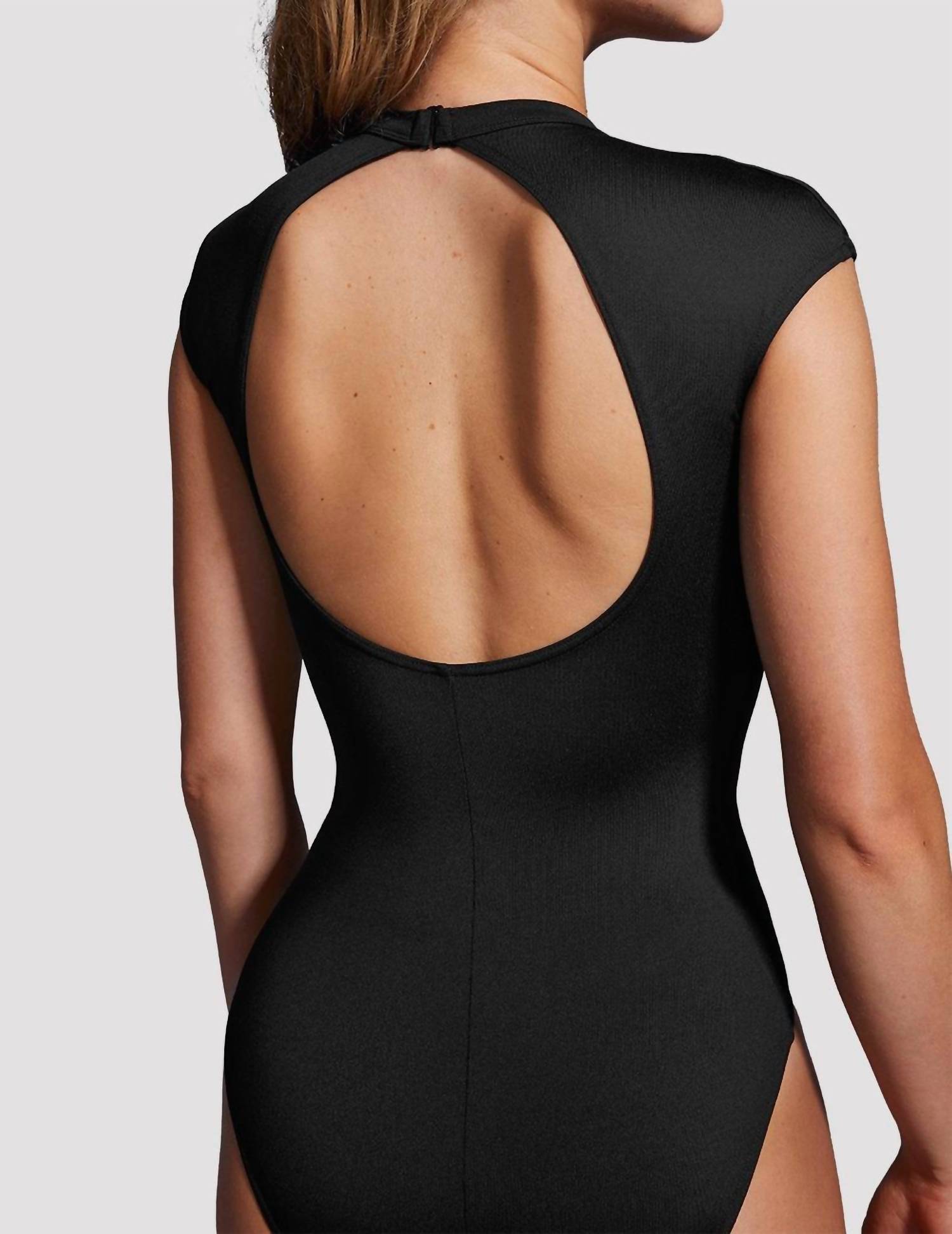Form fitting and comfortable - this bodysuit check all of the boxes. Discover the Bloch Mirella Label Cap Sleeve Open Back Leotard, a sleek addition to your dance wardrobe in timeless black. This leotard boasts cap sleeves and a mock neckline with elegant open shoulder details and an open back. Crafted from a supple 90% Nylon and 10% Spandex blend, it features a clip fastening at the back of the neck for a secure fit. Care: Hand wash and line dry. Ideal for any dance occasion, this piece offers the elegance of a little black dress with the functionality of activewear.