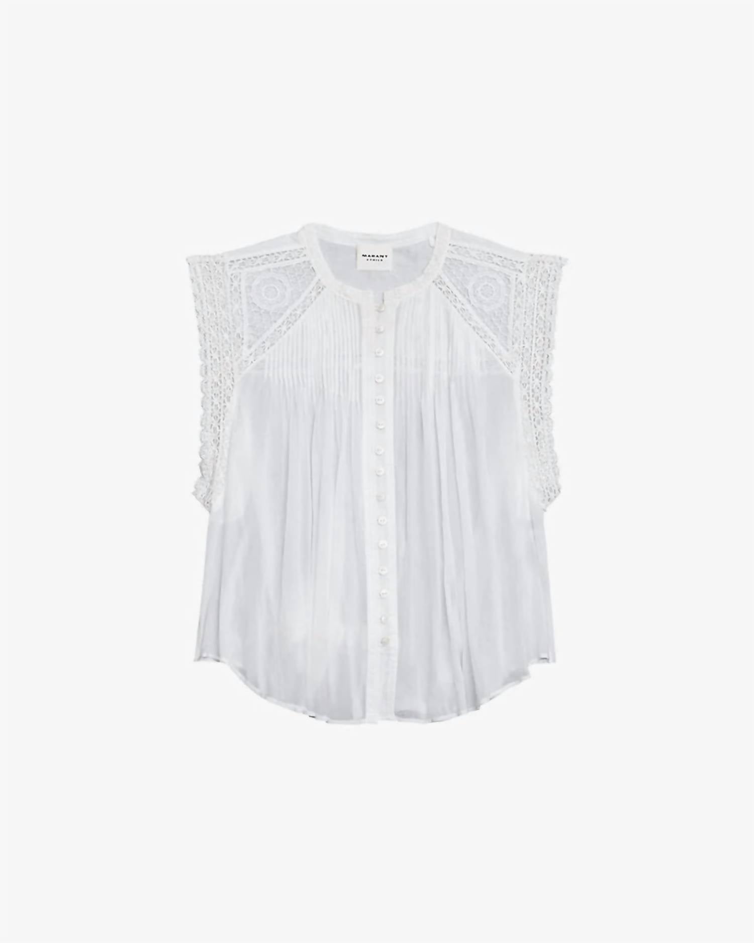 Pair this number with your favorite high-waisted jeans. Elevate your summer wardrobe with the Gresia Top by ISABEL MARANT, a refined piece in timeless white crafted from 100% cotton. This sleeveless top is highlighted by openwork lace shoulder yokes and a round neckline with lace trim, offering a touch of elegance. Designed with a button closure for easy wear and a straight cut with a rounded hem, it's perfect for vacation occasions or as a minimalist statement. Effortless to maintain, simply machine wash when needed.