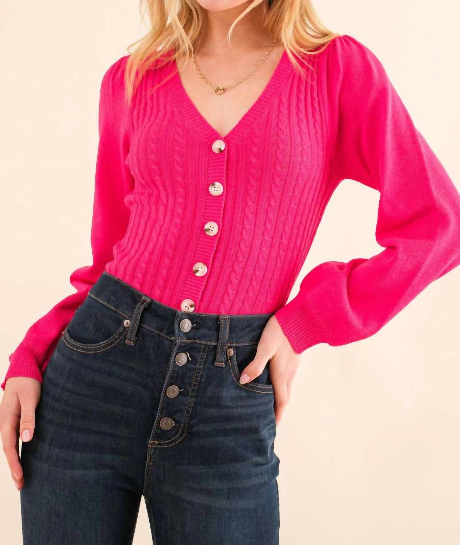 And The Why - Cable Knit Button Down Sweater Bodysuit