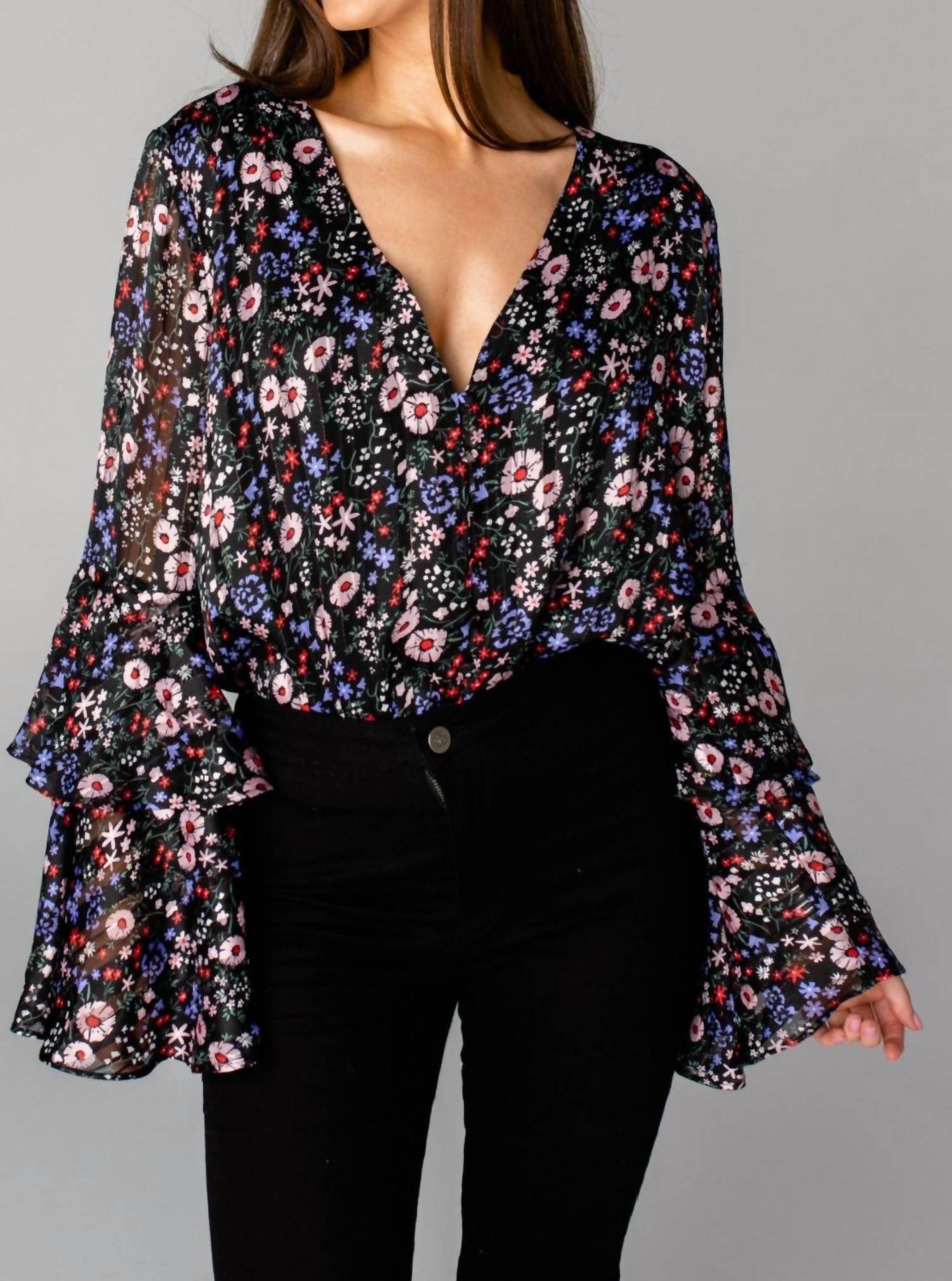 Form fitting and comfortable - this bodysuit check all of the boxes. Meet the Cheyenne Secret Garden Bodysuit by BUDDYLOVE, a retro-inspired piece with a vibrant floral print. It boasts long sleeves and a flattering V-neckline, crafted from 100% polyester for a lightweight feel. Closure: Pull on. Care: Hand wash. Perfectly versatile for your boho chic vacation wardrobe.