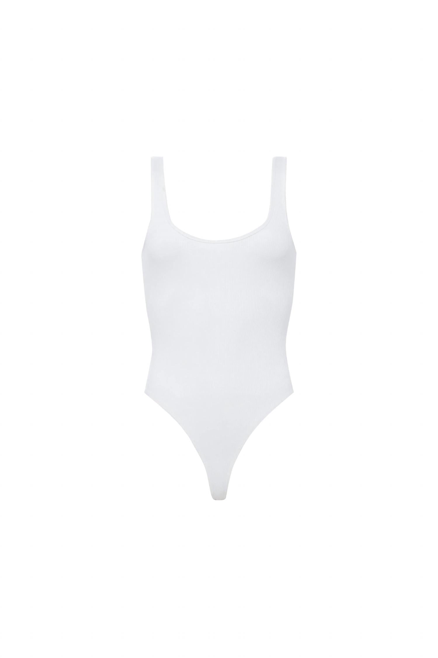 Who doesn't love a good bodysuit? The Nica Scoopneck Bodysuit by L'Agence is your go-to piece for a sleek and stunning look at any holiday party. This sleeveless, pure white bodysuit features a super-sexy double scoopneck design in a silky soft ribbed knit that hugs your figure beautifully. Made from a blend of 47% Cotton, 47% Modal, and 6% Spandex, it provides a comfortable fit with a cheeky silhouette that fastens with a two-snap gusset. This minimalist piece measures approximately 27.75 inches from shoulder to bottom and requires hand washing for care. Model is wearing a size XS (5'10" height, 32" bust, 24" waist, 34.5" hip).