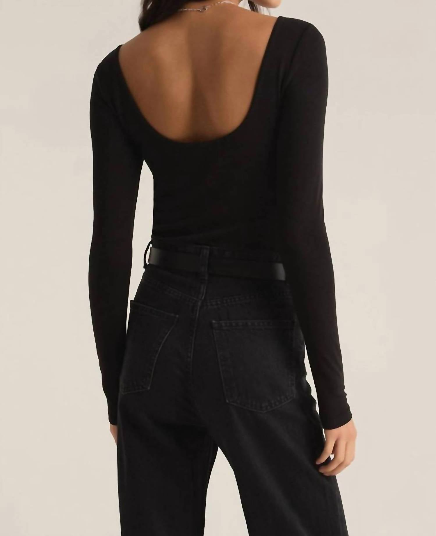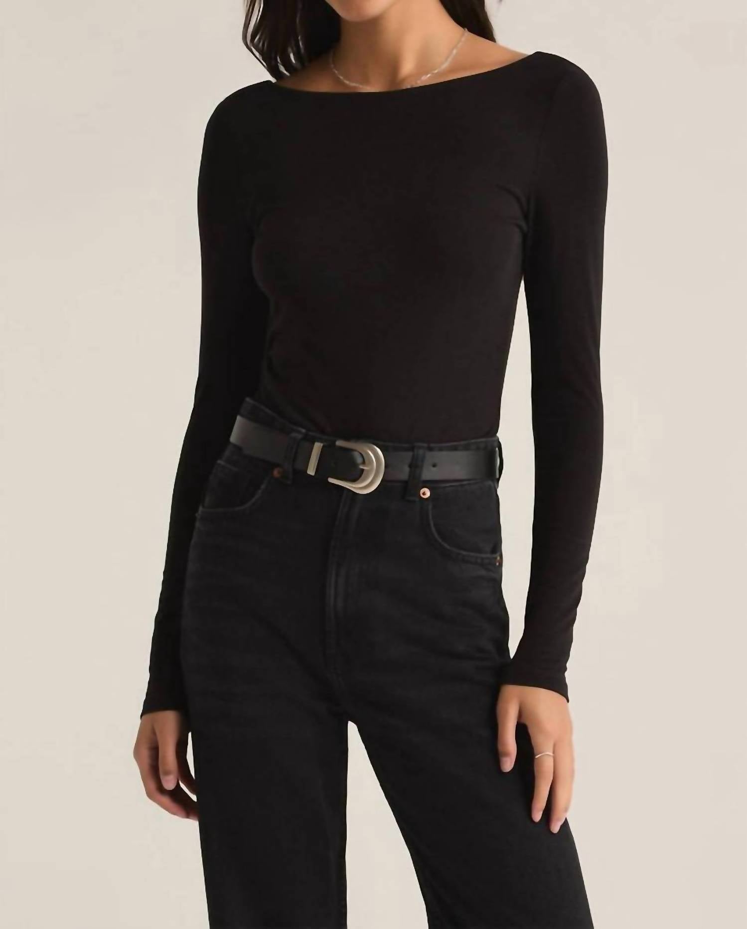 Form fitting and comfortable - this bodysuit check all of the boxes. Experience the sleek silhouette of the Baela Crewneck Bodysuit - Plus by Z Supply, designed to elevate your wardrobe with elegance. This fitted bodysuit features long sleeves and a classic crew neck, enhancing its timeless appeal. Made from Second Skin Baby Rib, composed of 92% Rayon and 8% Spandex, it showcases a daring low back design complemented by a snap button closure. Ideal for spring occasions, it's best maintained with hand washing.