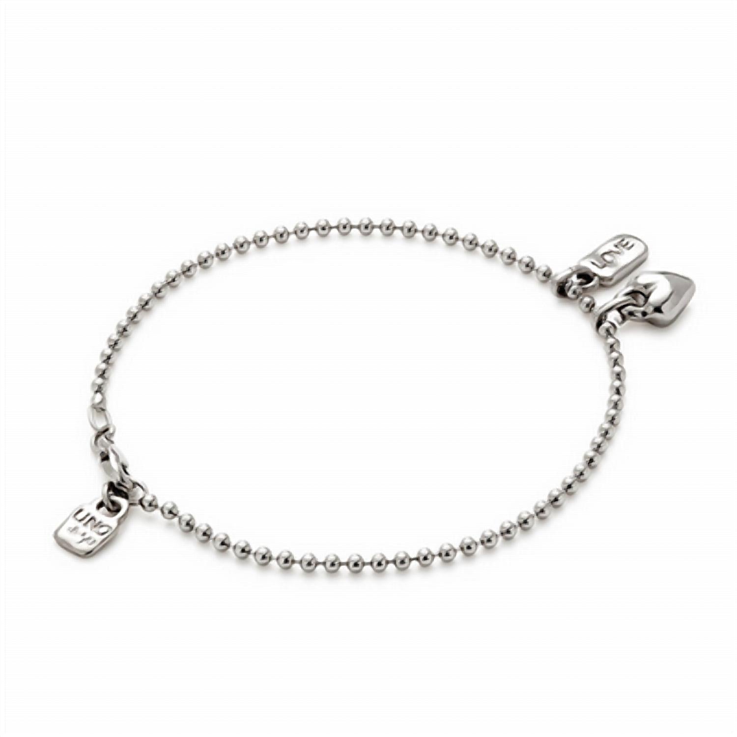 This stand-out bracelet is good enough to wear on its own, or stacked with your favorites. Introducing the Women's Ser Unico Exc Bracelet by UNOde50, a refined expression of individuality in a subtle yet sophisticated design. This medium-sized bracelet is plated with high-quality silver and adorned with a delicate heart and love charm. Made in Spain, it embodies the spirit of "Ser único," celebrating your unique identity with elegance. Enjoy peace of mind with its 1-year guarantee, making it an exquisite addition to any collection.