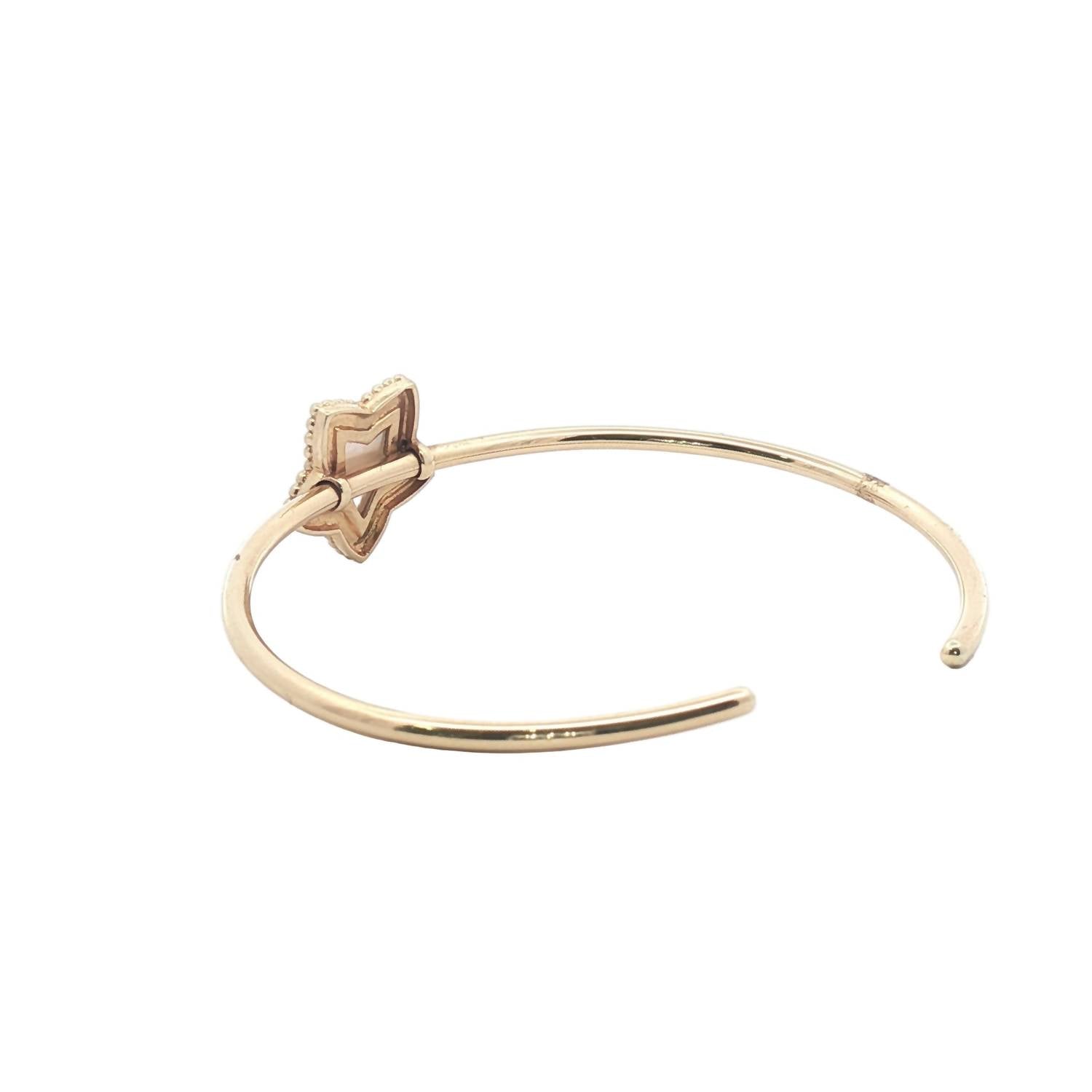 This bracelet will be your favorite go-to piece of the season. Introducing the Women's Star Bangle Bracelet by Trio, a stunning piece crafted in 14k Yellow Gold. This fine bracelet features a dazzling Mother of Pearl star set with 0.11Tw round diamonds, creating a captivating piece with natural gemstone origins. Boasting a luxurious bezel setting, it pairs the elegance of gold with the pearlescent beauty of a white stone. Perfect for those born in June, this bracelet embodies timeless sophistication.
