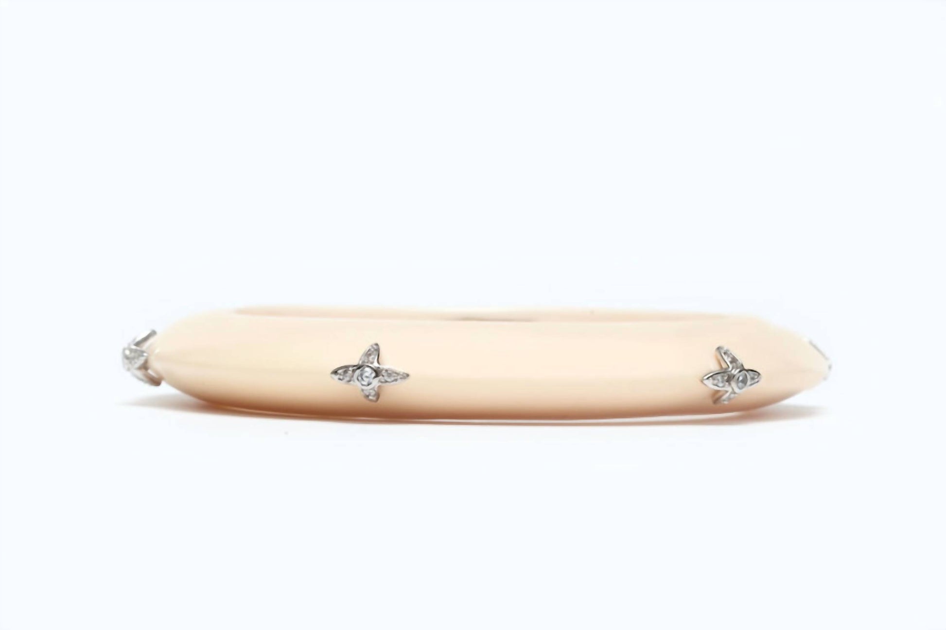 This stand-out bracelet is good enough to wear on its own, or stacked with your favorites. Elevate your ensemble with the Women's Starlet Bangle by Avenue Chic, a sophisticated piece in elegant ivory. This fashion bracelet features shimmering cubic zirconia set in a bezel setting, with simulant stone origin adding a touch of affordability without sacrificing style. Made from silver plating, it effortlessly complements any outfit. The bangle showcases a timeless appeal with its white/colorless gemstones, perfect for any occasion.