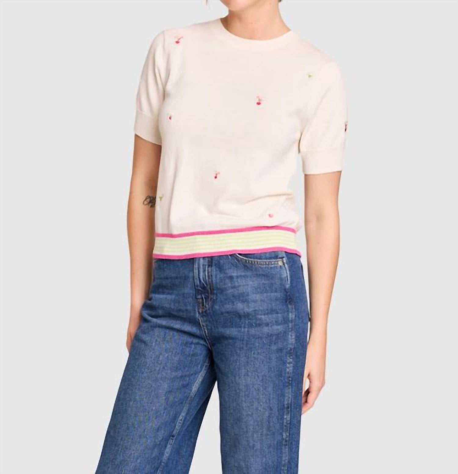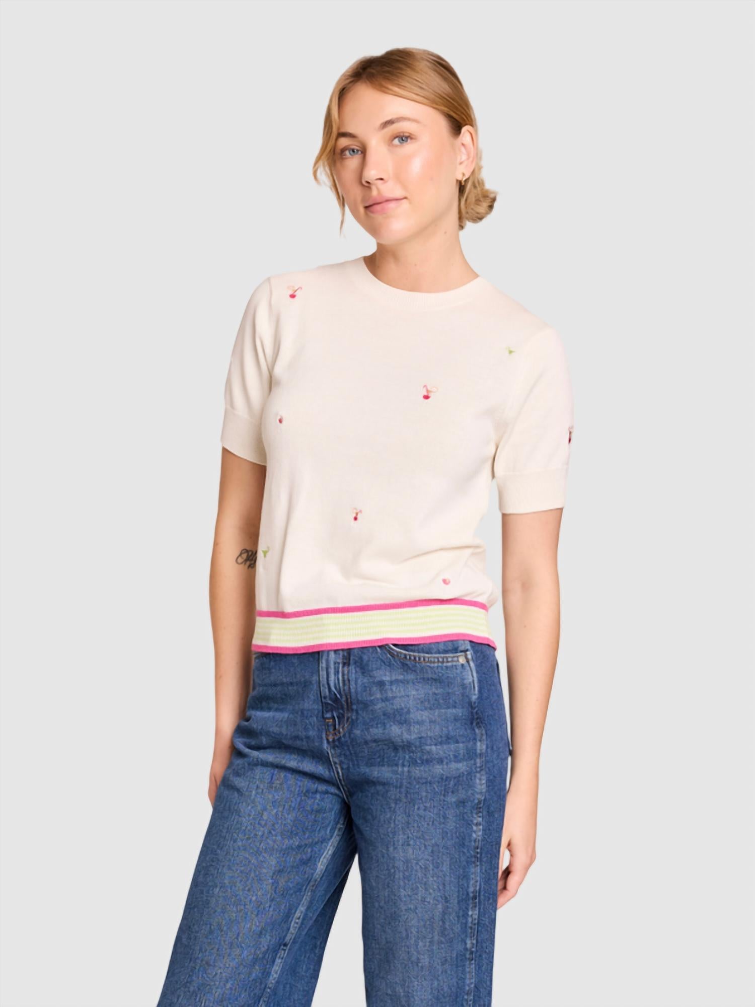 The short sleeve tee you'll want in every color. Elevate your casual style with the Cocktail Embroidery Tee by Brodie Cashmere, perfect for a holiday party vibe. Crafted from pure 100% Cotton, this minimalist tee features short sleeves and a classic crewneck design in a crisp white hue. It boasts a graphic pattern that adds a charming touch to the ensemble. Closure is a convenient pull-on style, and it's easy to care for with machine wash instructions.