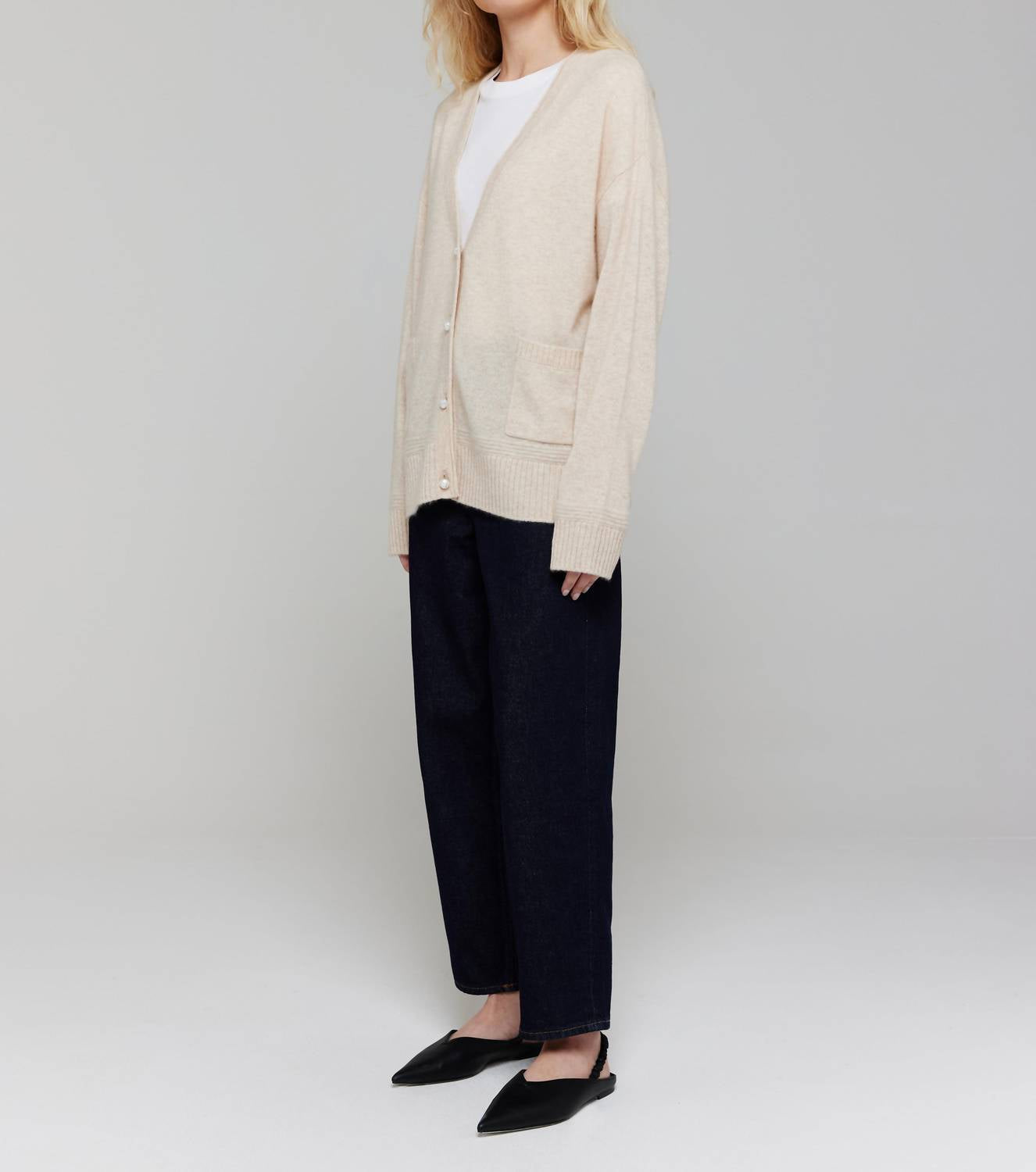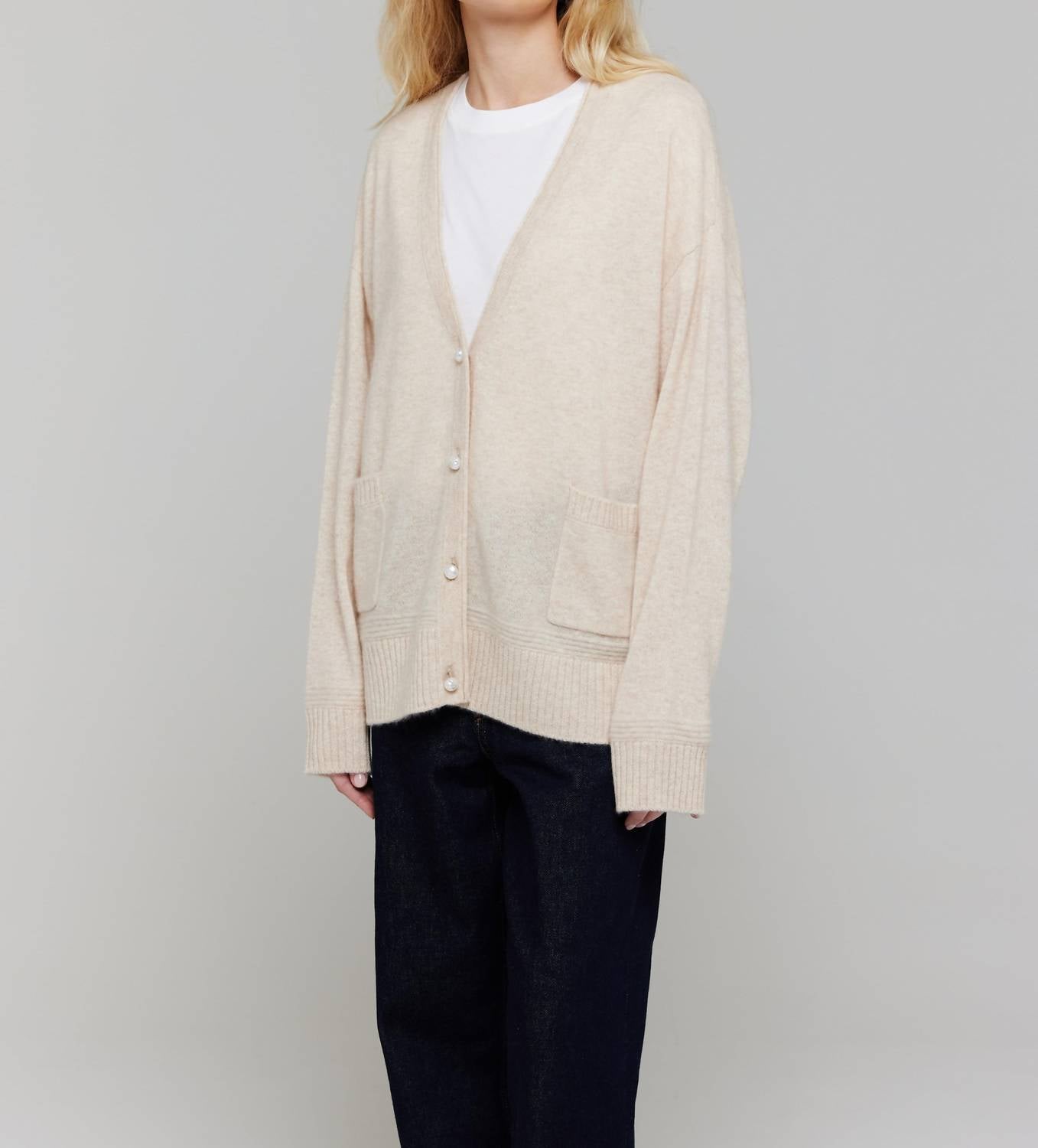 Throw this adorable cardigan over any cami or tank top. The Penny Roll Edge Cardigan by Brodie Cashmere offers a luxurious, loose fit with a timeless, solid preppy style in Cygnet. Crafted from 100% Grade-A Mongolian Cashmere, this long-sleeve cardigan is perfect for a Spring vacation with its V-neckline and convenient pockets. Closure: Features 4 elegant Mother of Pearl shell buttons. Care: Machine wash at 30°C, tumble dry. Ideal for adding a touch of sophistication to your wardrobe.
