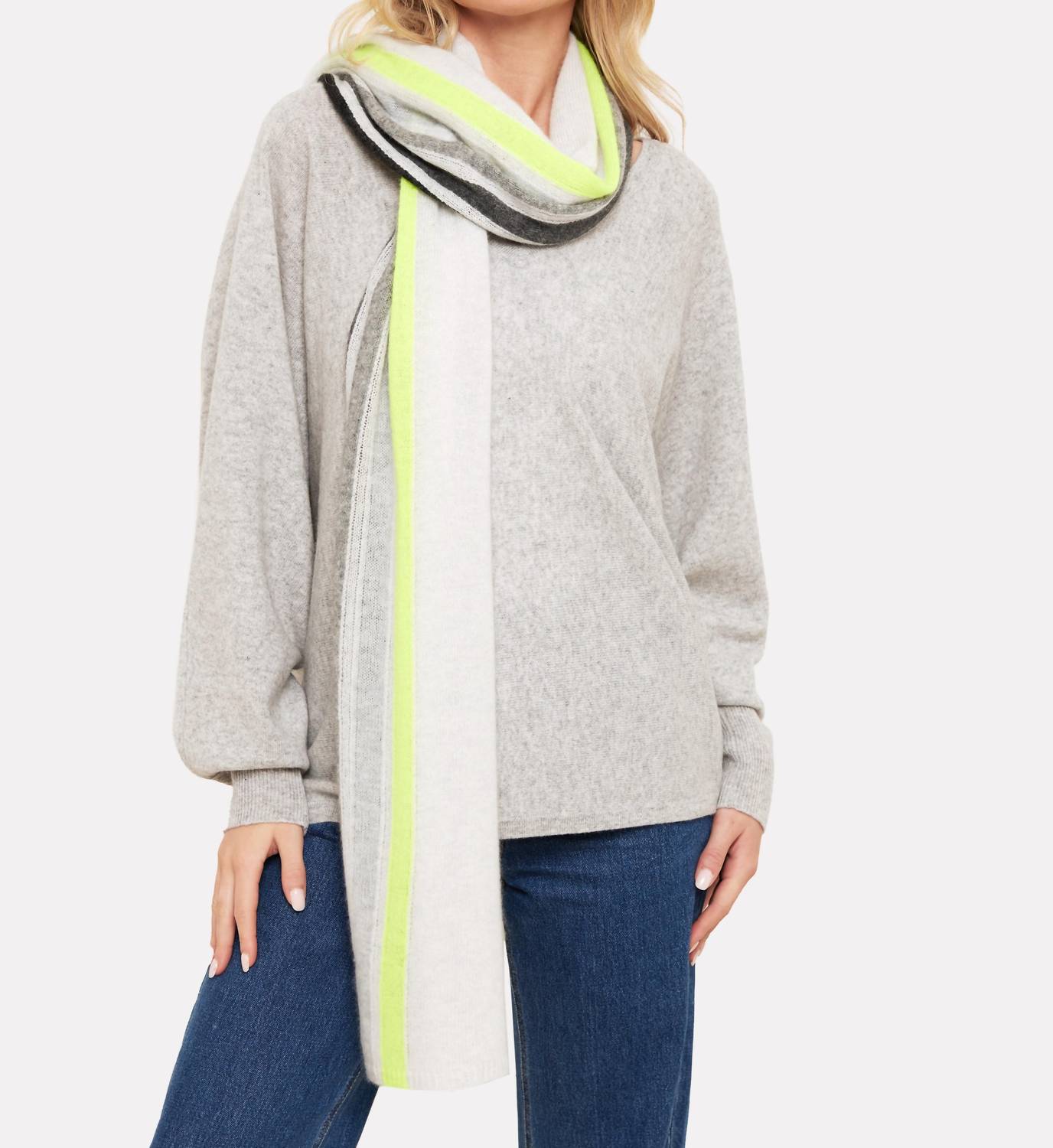 The perfect accessory to complete any look. Wrap yourself in luxury with the Rainbow Stripe Scarf by Brodie Cashmere, a statement piece in a stunning Haze color. Made from 100% Grade A Mongolian cashmere and colored with clean non-toxic dyes, this scarf ensures both comfort and sustainability. It measures 180cm x 50cm (70.5 inches x 19.5 inches) for an elegant drape. Care is made simple with its machine-washable feature at 30°C.