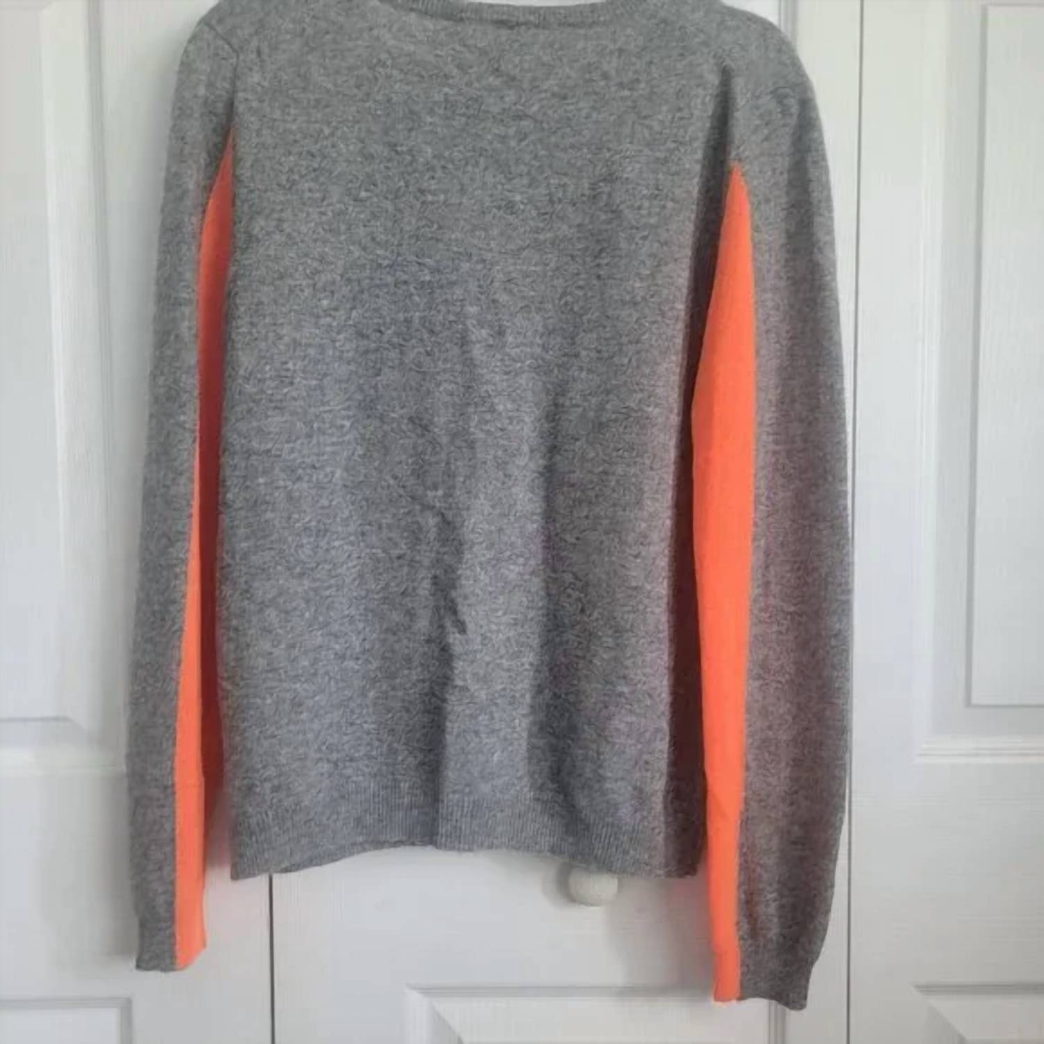 This cardigan will be a sweater-rotation favorite. Introducing the Women's Color Block Cardigan by Brodie Cashmere, an ethically crafted piece that's perfect for travel and minimalist style. This cardigan features long sleeves and a trendy color block design in grey and neon orange with a V-neck and open front style. Made from 100% fine cashmere, it's soft, lightweight, and breathable, providing both comfort and luxury. Closure: Button closure. Care: Dry clean only.