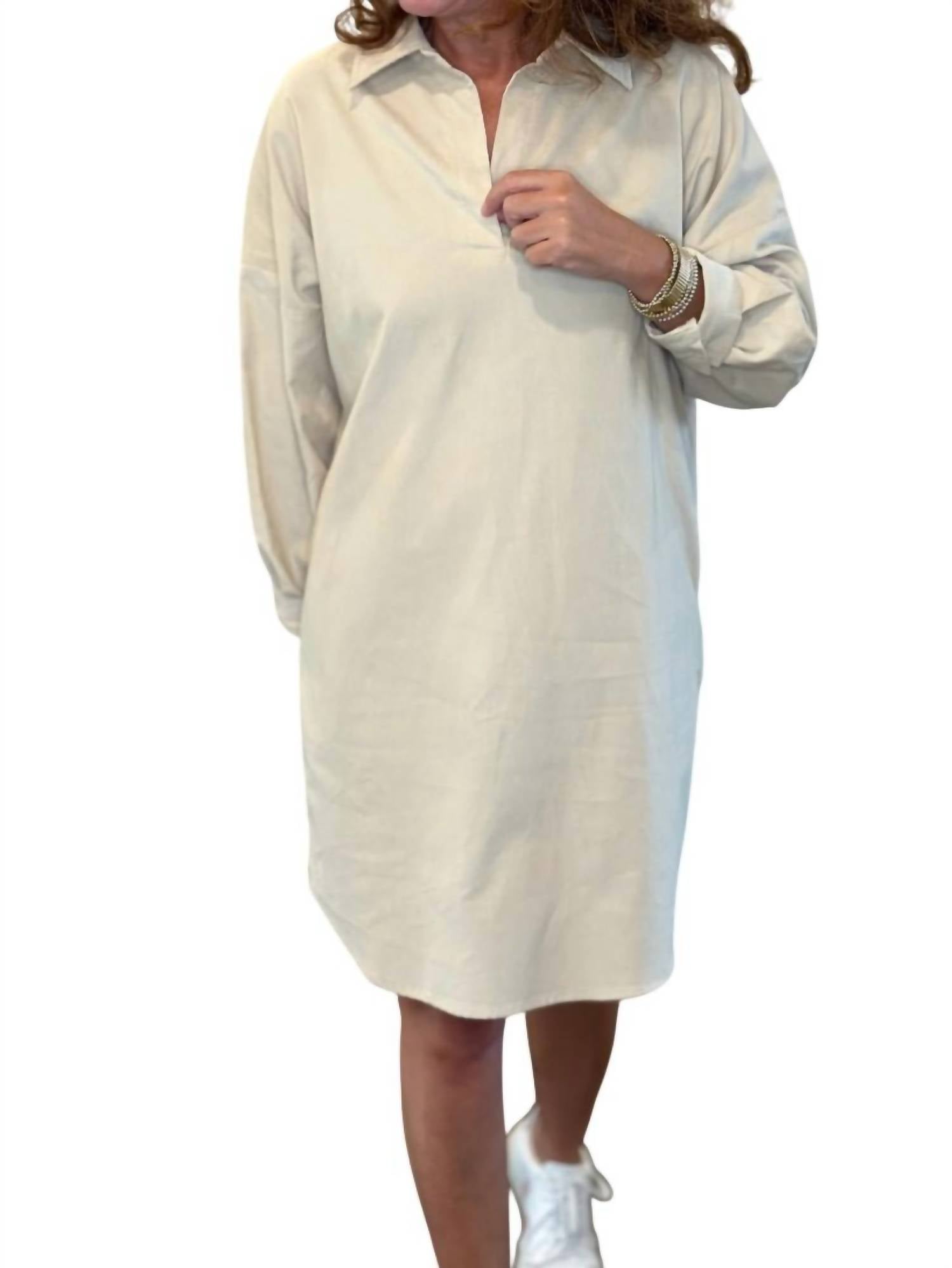 With a playful pink star embellishment on the elbow. This long-sleeve shirt dress offers a relaxed, one-size fit for sizes 4-12, with a front length of 37 inches and a back length of 39 inches. Crafted from 100% cotton corduroy, it's both lightweight and soft, perfect for everyday wear. Designed with a pull-on closure, it features practical pockets and a classic collar. Can be machine washed on a gentle cycle for easy care.