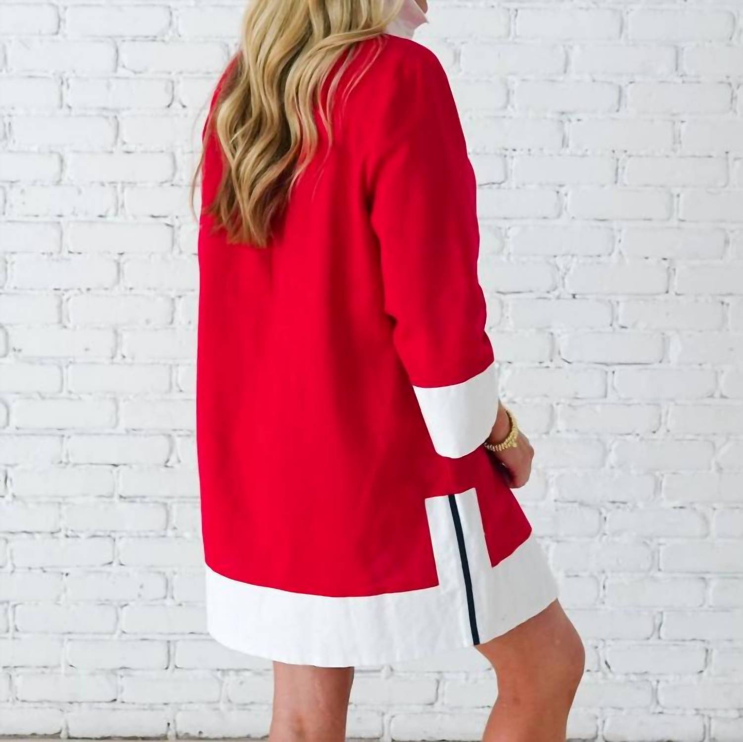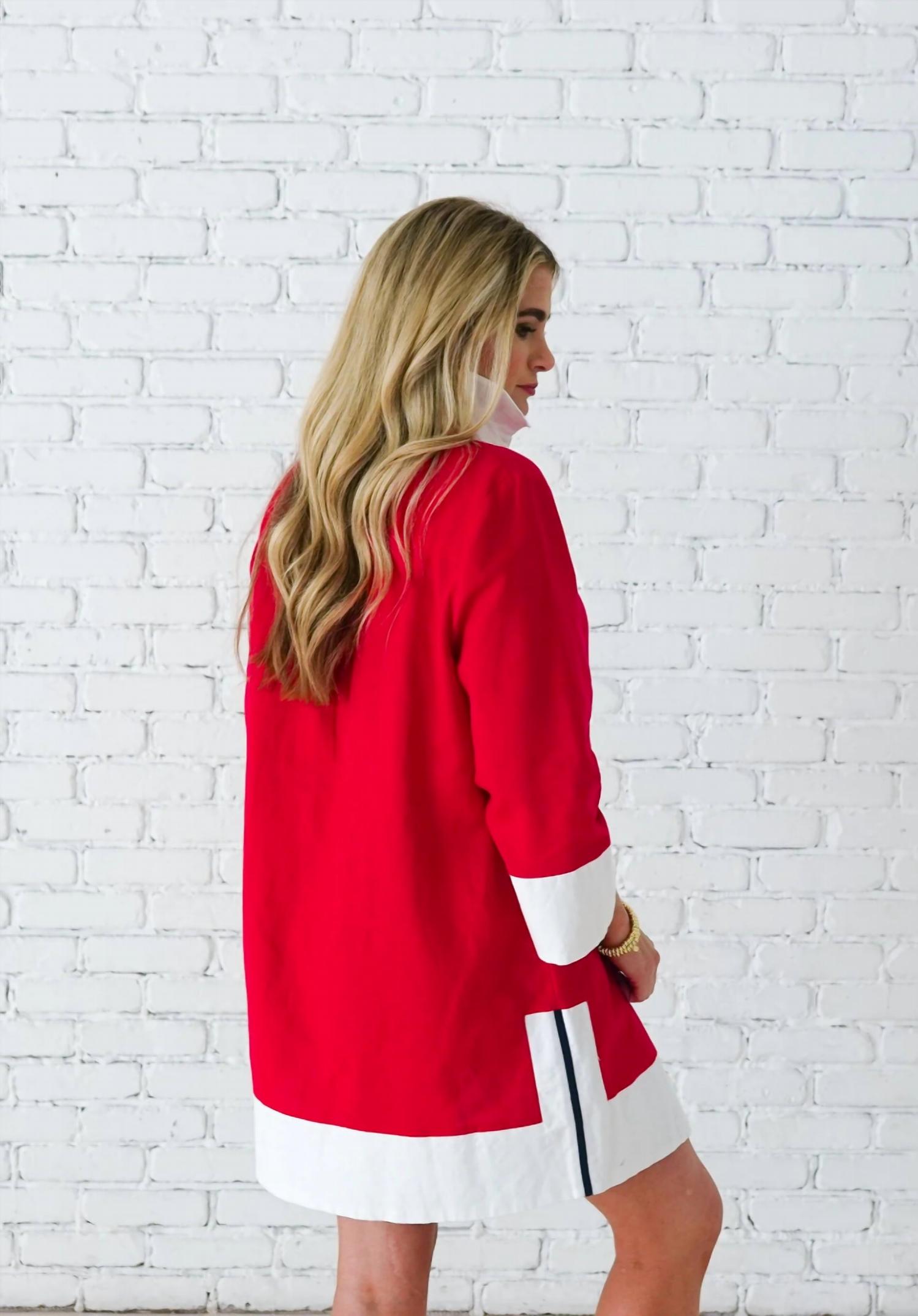 Cute and comfortable, this long sleeve dress has it all. Discover the Caryn Lawn Carrie Dress, a caftan-style shirt dress perfect for your spring wardrobe. With long sleeves and an elegant collar neckline, this dress features striking red detailing on the sides, adding a touch of sophistication. The solid pattern and button closure combine for a classic, polished look, while pockets add practical charm. Ideal for a holiday party, this dress is crafted without specific care instructions provided.