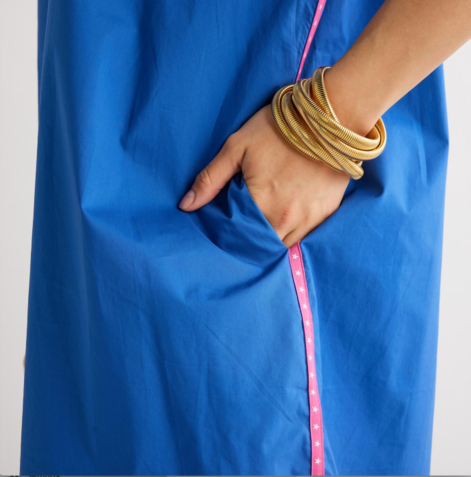 A short and breezy dress for those warmer days. Introducing the Jackie Mini Dress by Caryn Lawn, a vibrant addition to your wardrobe in a royal hue. This solid shirt dress features short sleeves and convenient pockets for an effortlessly chic look. Ideal for engagement occasions or workwear, it comes with a classic collar and button closure to complete the elegant silhouette. Perfect for the spring season, this dress effortlessly combines style and functionality.
