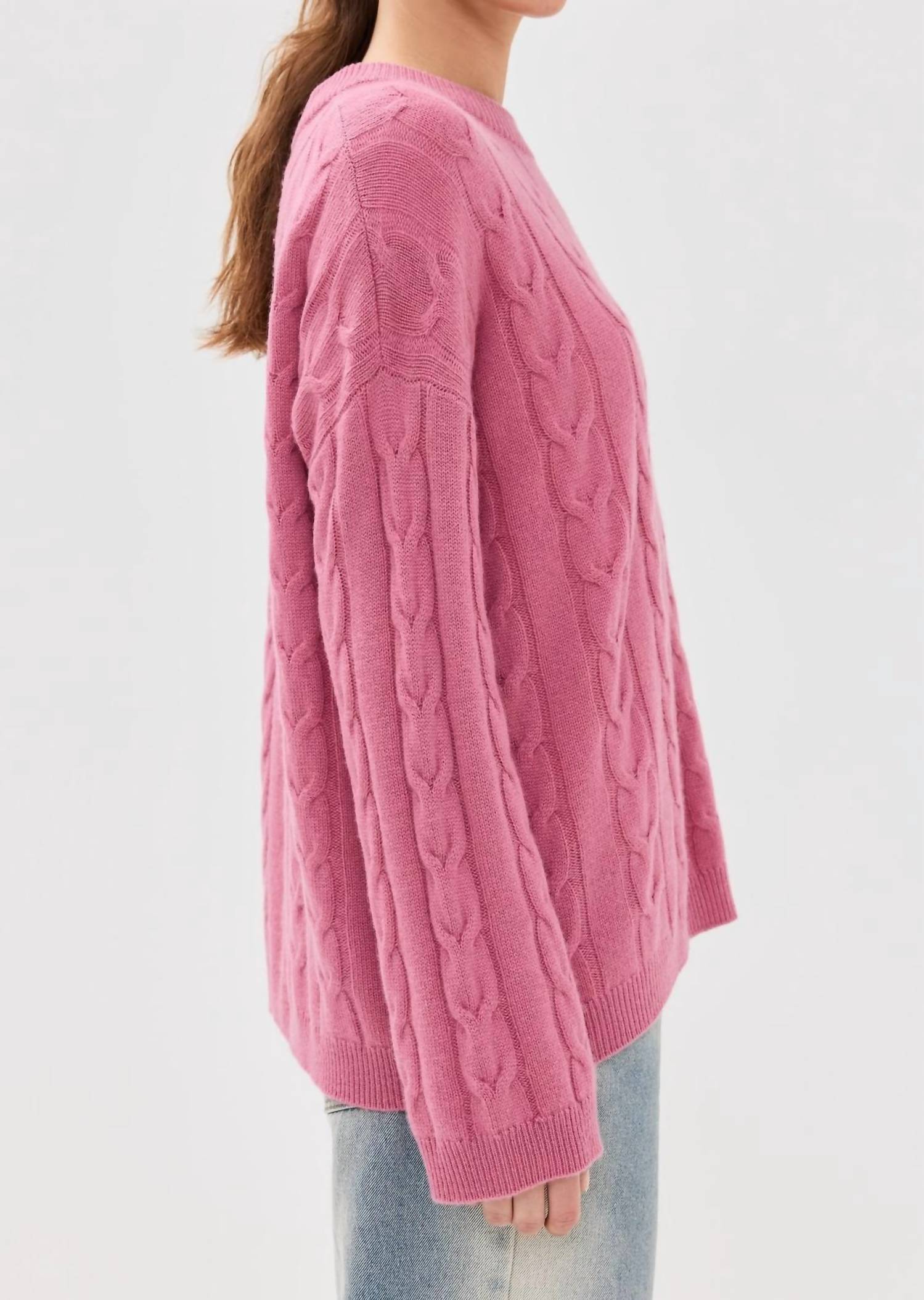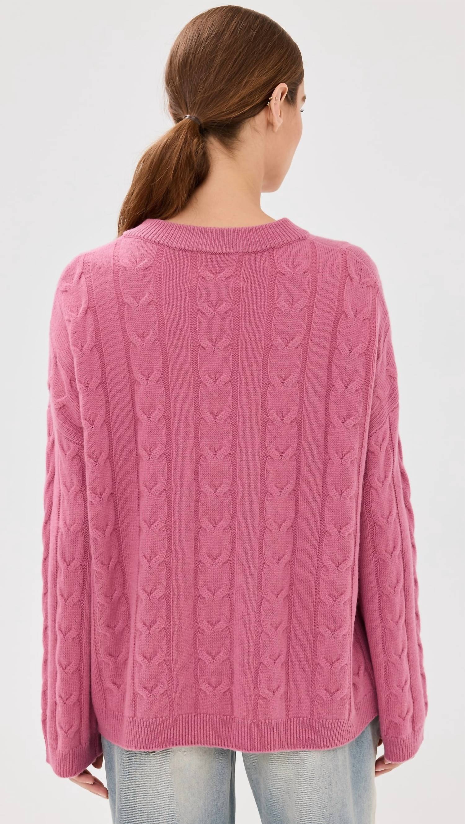 The ultimate go-to sweater, expertly crafted to provide the perfect combination of warmth and style. Its classic design and soft fabric make it a must-have addition to your wardrobe. Introducing the Vilma Cable Sweater by LISA YANG, a luxurious piece crafted for a relaxed fit silhouette. This rose pink sweater features long, straight sleeves and a crewneck design, all in a textured cable knit pattern. Made from 100% cashmere, it measures 22.75 inches in length and originates from China. With its pull-on closure, this sweater requires dry cleaning for care.