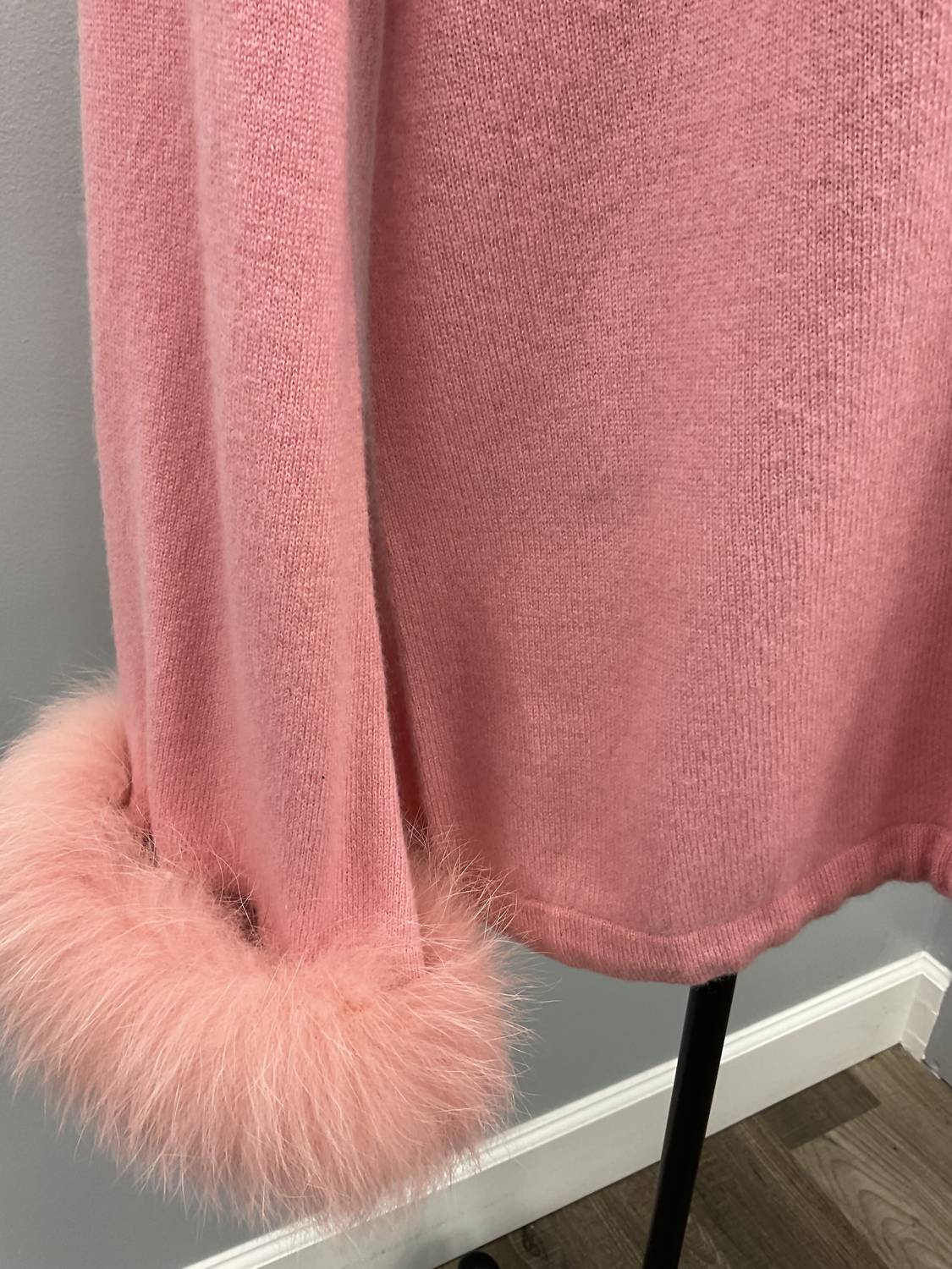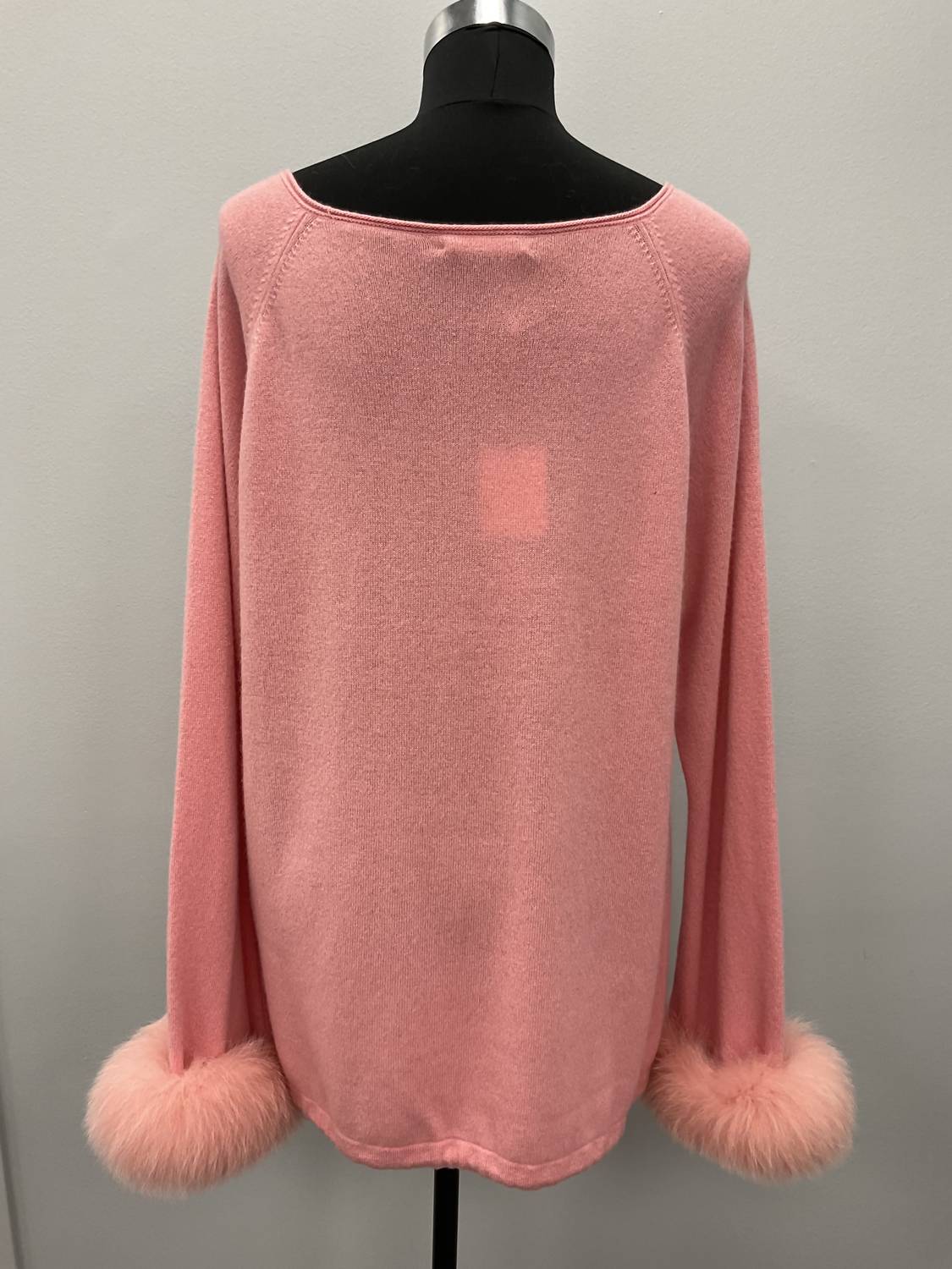 Experience the perfect blend of comfort and style with this trendy crew neck sweater, designed to effortlessly elevate your wardrobe. Pair it with your favorite denim and loafers for the perfect look. Wonderful 100% cashmere sweater with drawstring on the bottom. With detachable fox cuffs