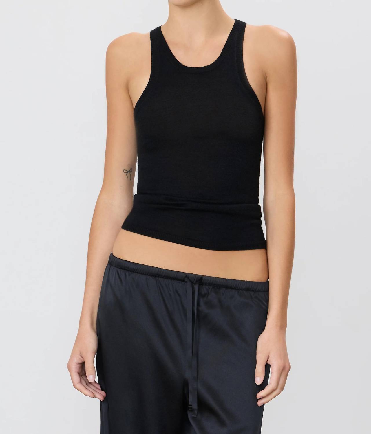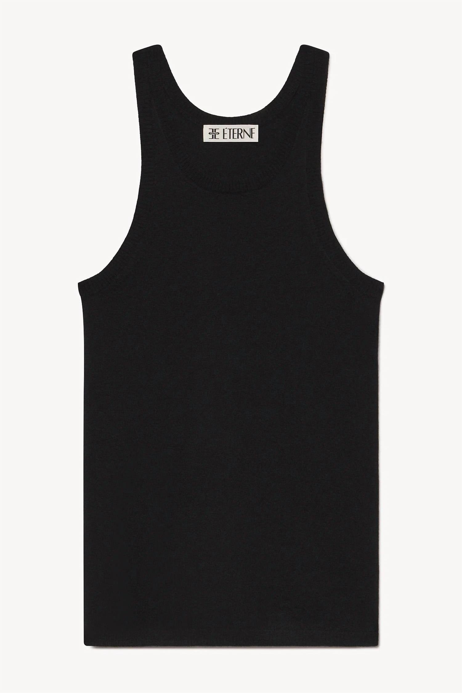 The perfect tank top for those warmer weather seasons. Discover the Eterne Ryder Tank, a luxurious addition to your summer wardrobe crafted from 100% cashmere. This solid black, sleeveless design features a chic scoop neckline and offers a quiet luxury feel, perfect for vacation occasions. With a convenient pull-on closure and no pockets, this tank complements effortless sophistication. Care: Dry clean only.