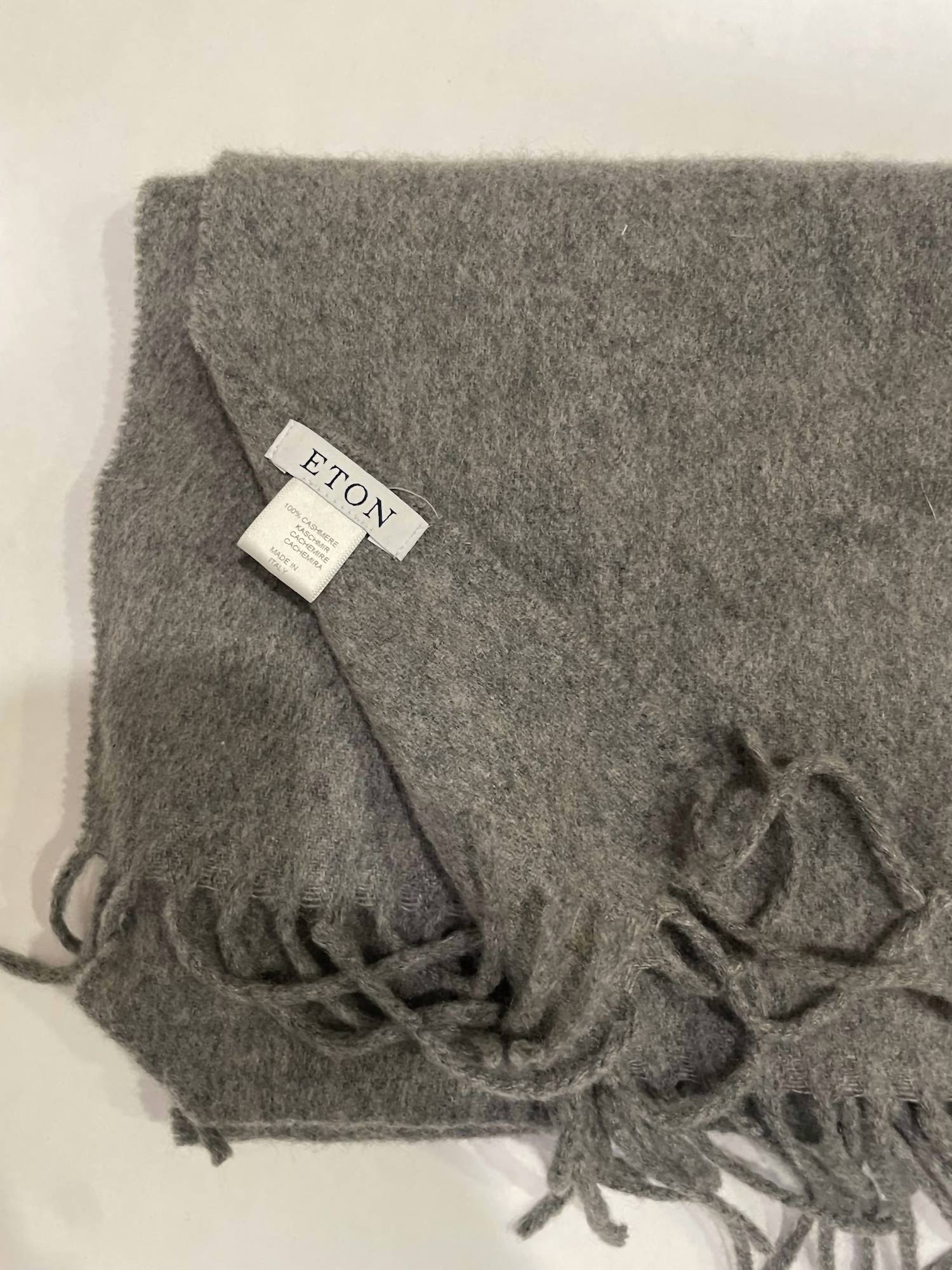 Wrap yourself in luxury with the Cashmere Scarf by Eton, an oblong design tailored for comfort and style during autumn and winter. Crafted from 100% cashmere, this soft and comfortable grey scarf is enhanced with ruffle details at the ends for a touch of elegance. Woven to perfection, it ensures warmth and sophistication in any ensemble. Add this exquisite piece to your accessory collection for a timeless addition to your wardrobe.